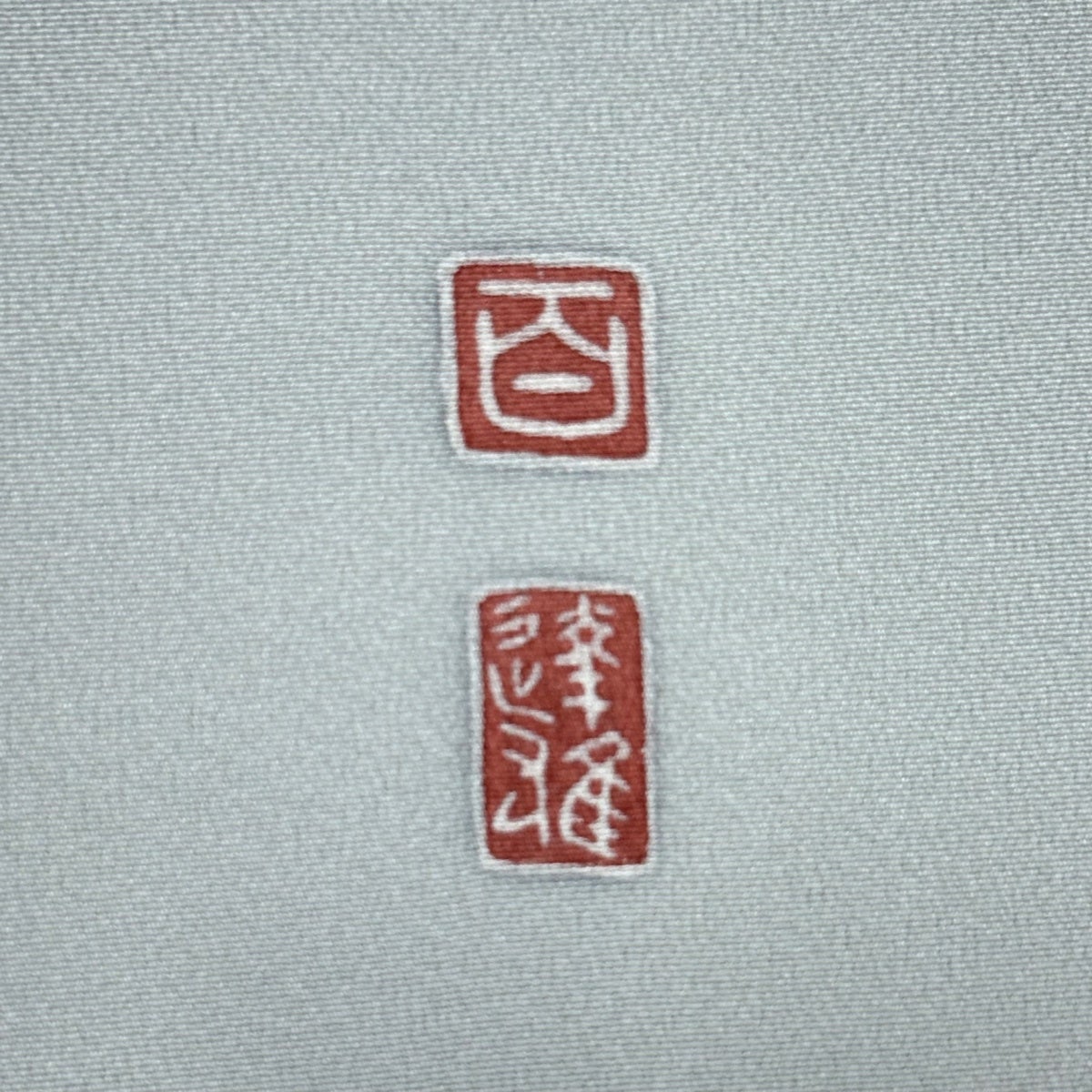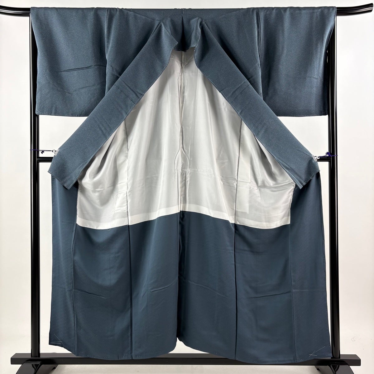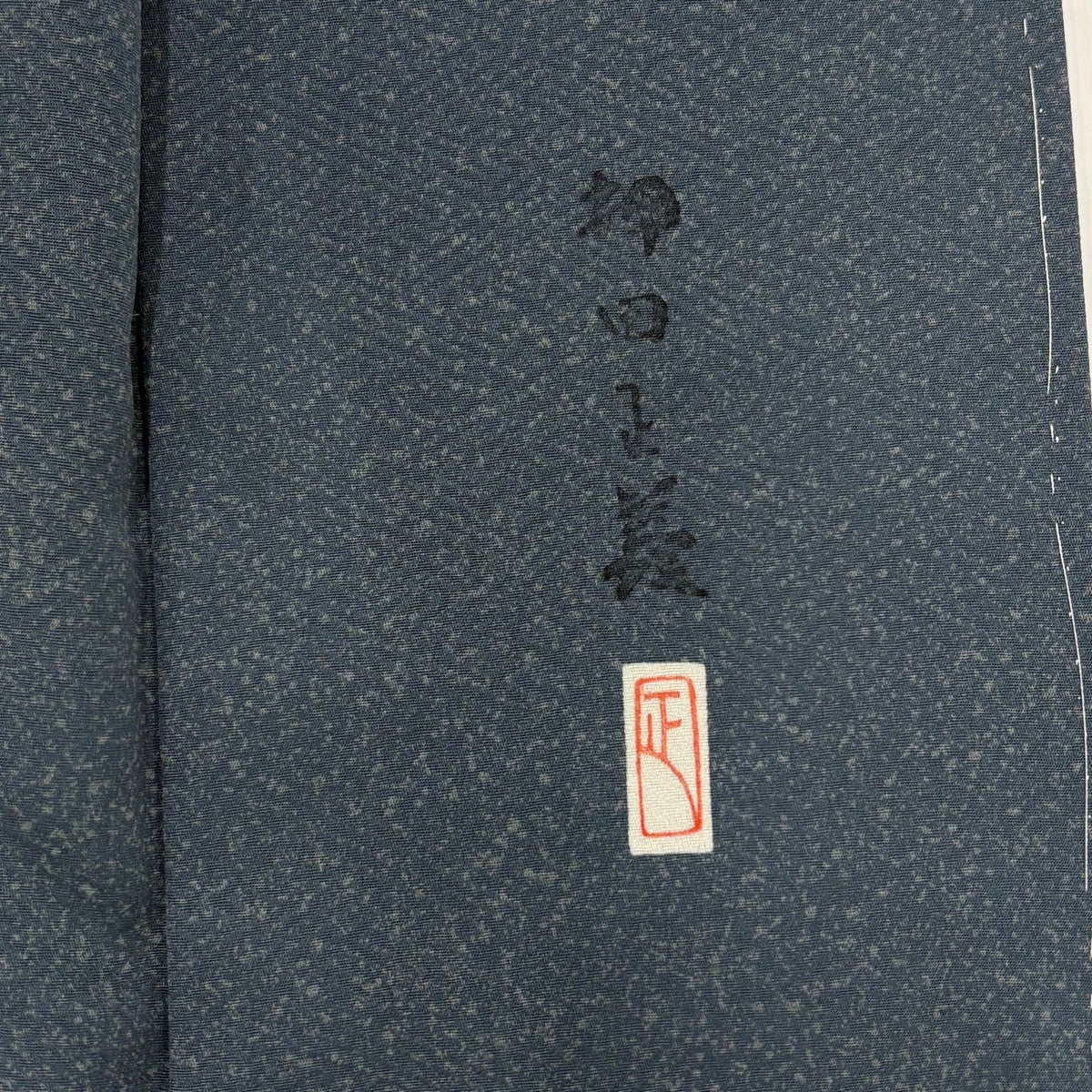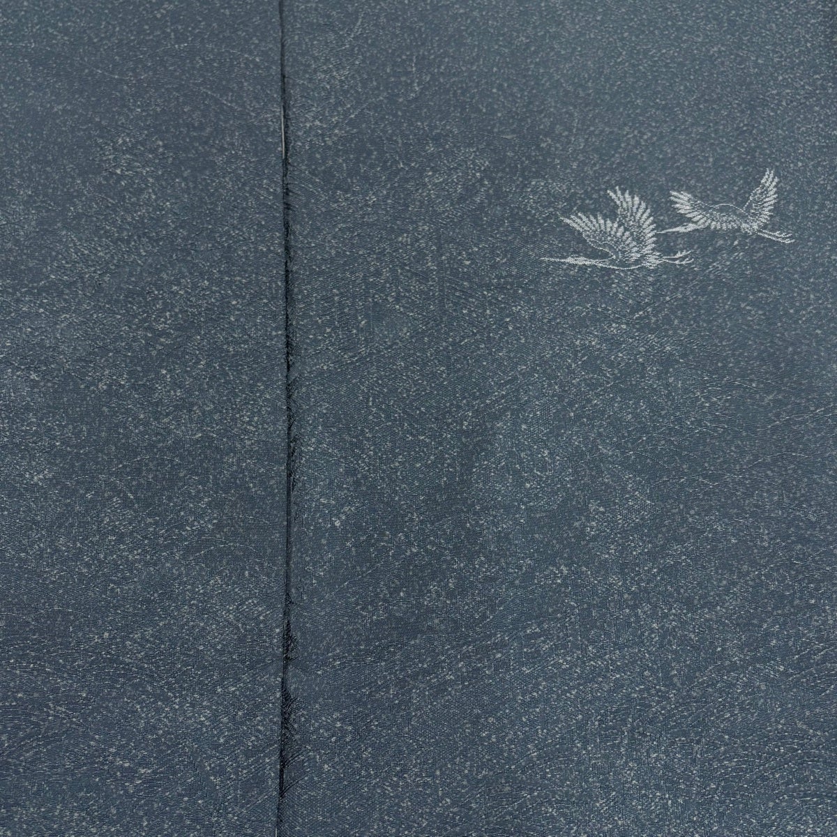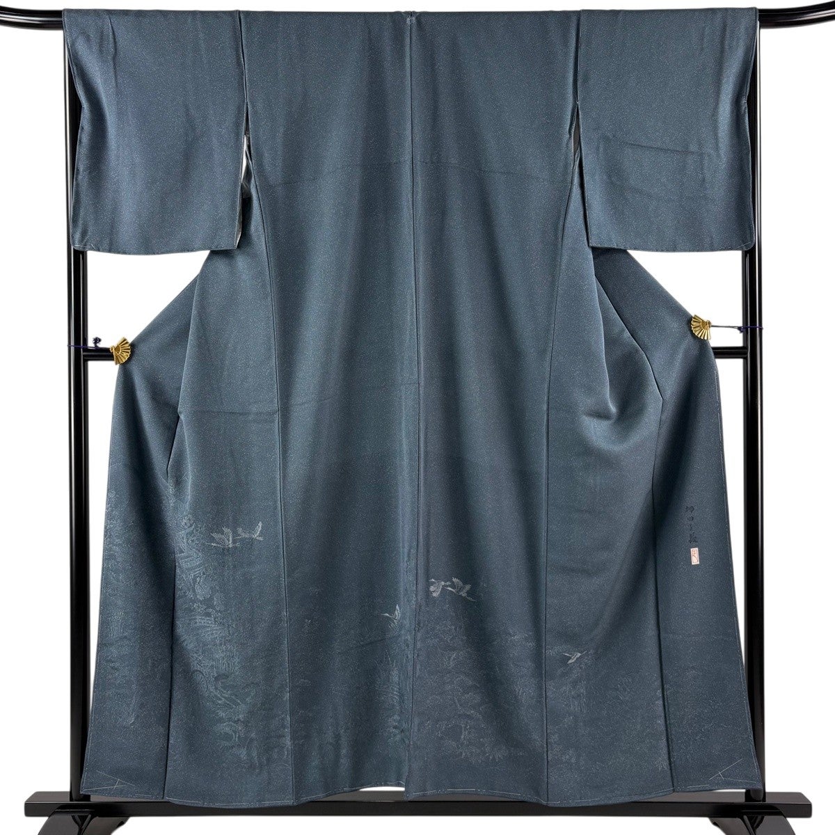 付下げ 身丈155cm 裄丈67cm M 袷 押田正義 落款あり 鶴 地紋 青灰色 正絹 名品 一つ紋