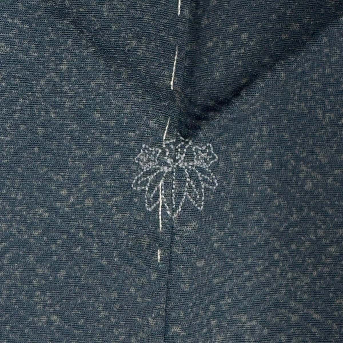 小紋 身丈152.5cm 裄丈65.5cm M 袷 柿本市郎 落款あり 花 地紋 灰緑 正絹 秀品 一つ紋