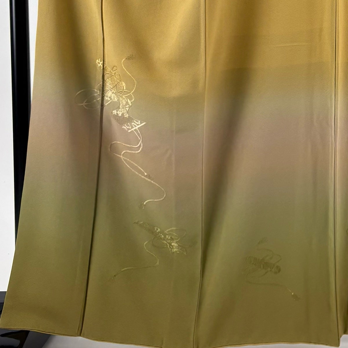 【美品】 付下げ 身丈164.5cm 裄丈65.5cm M 袷 反物 琴 刺繍 ぼかし 黄土色 正絹 秀品
