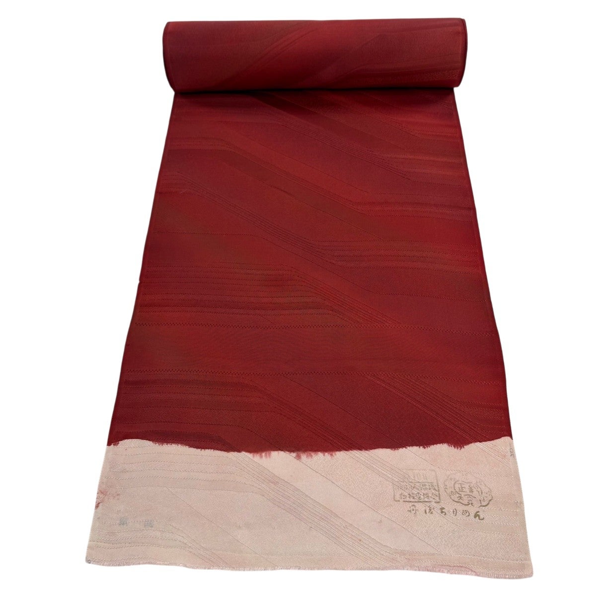 反物 優品 羽尺 羽織 和装コート 地紋 幾何学模様 ぼかし 赤 正絹