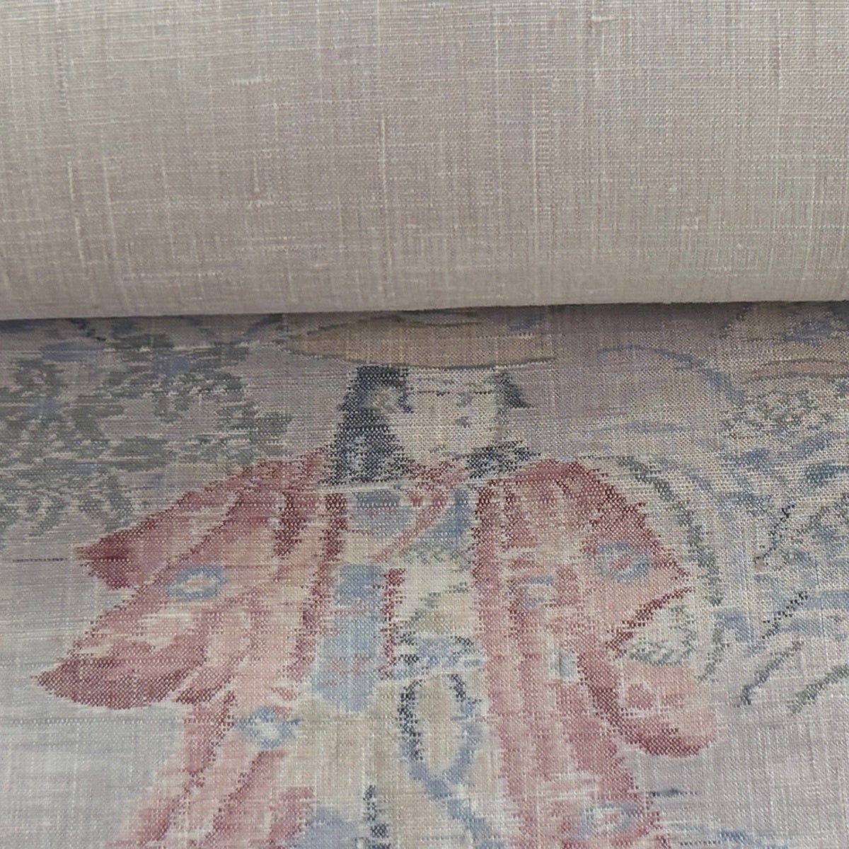 反物 優品 羽尺 羽織 和装コート 牡丹 花唐草 ピンクベージュ 正絹