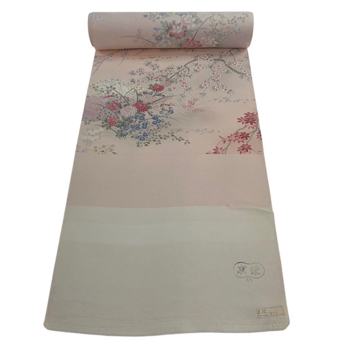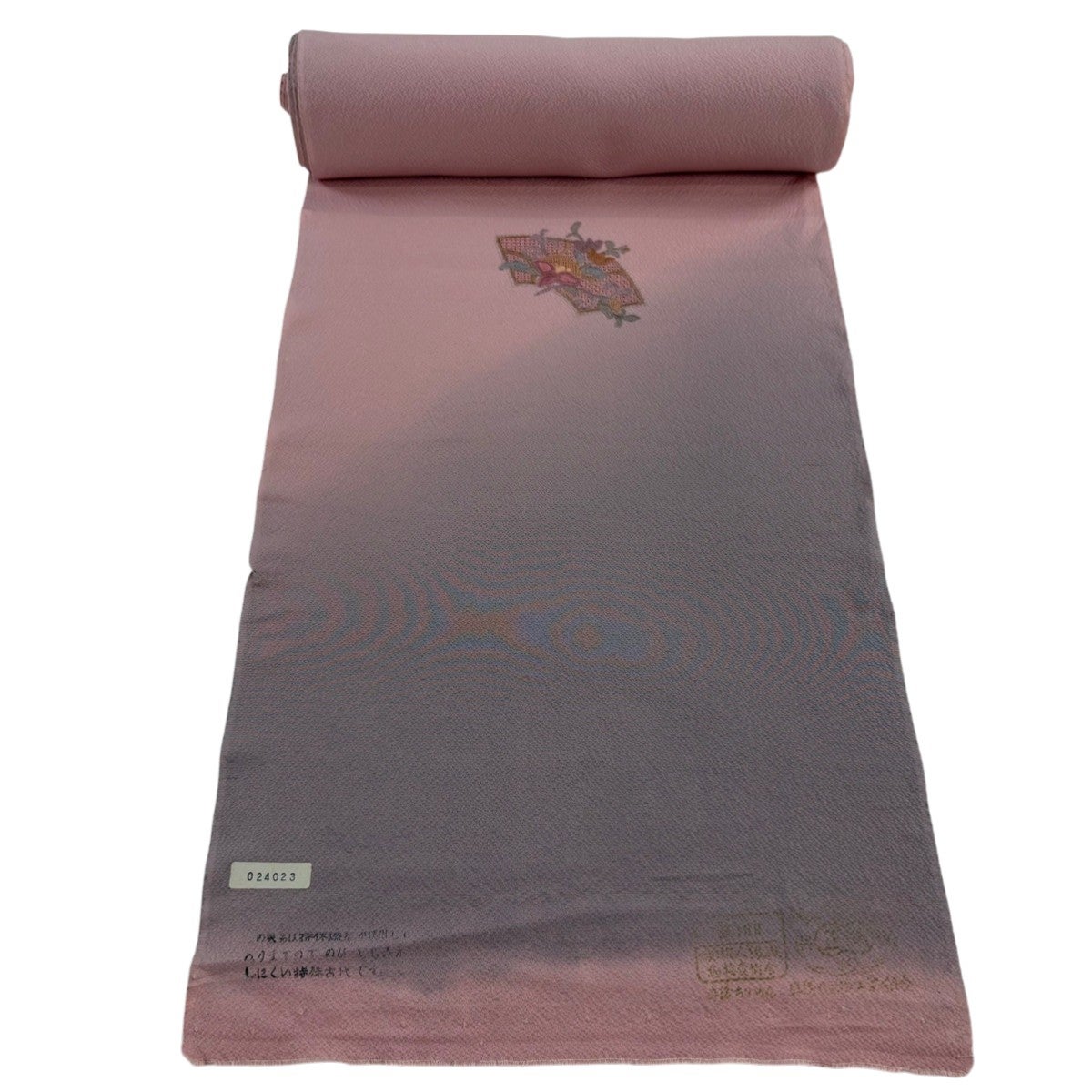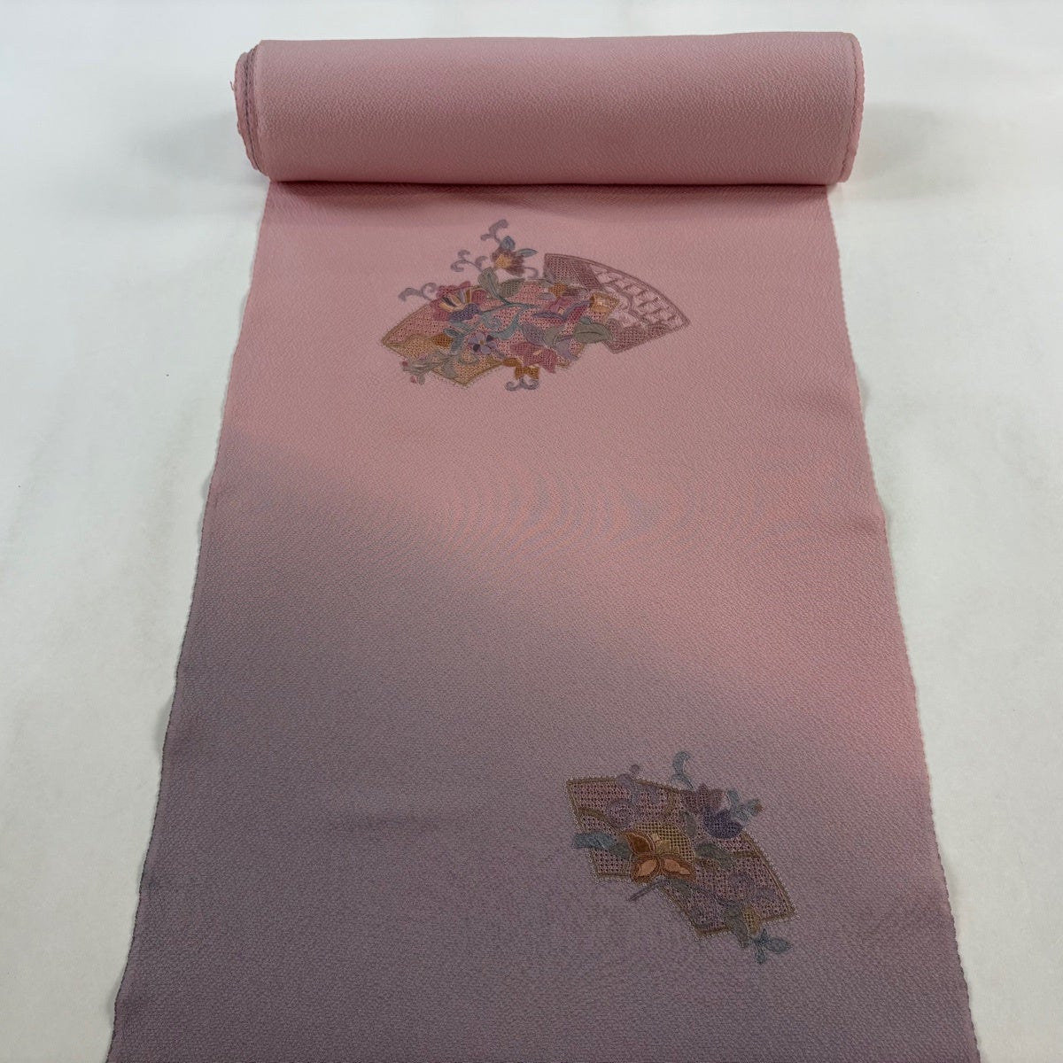 反物 秀品 付下げ 扇面 花唐草 刺繍 ぼかし ピンクベージュ 正絹