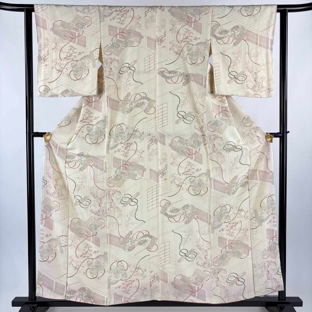 反物 秀品 小紋 京加賀小紋 家屋 松竹梅 ピンクベージュ 正絹