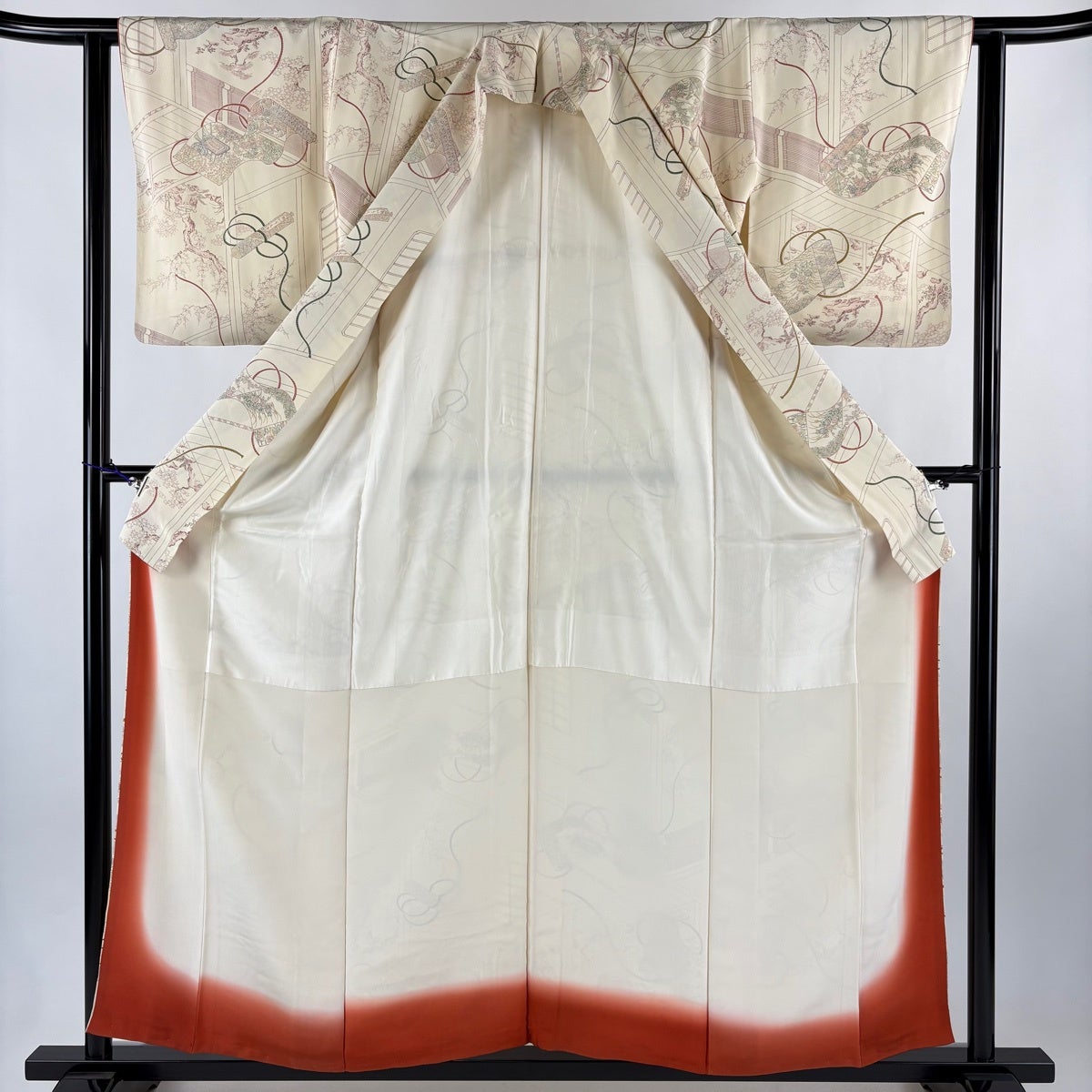 反物 優品 羽尺 羽織 和装コート 草花 逆さ雲取り ぼかし 茜色 正絹