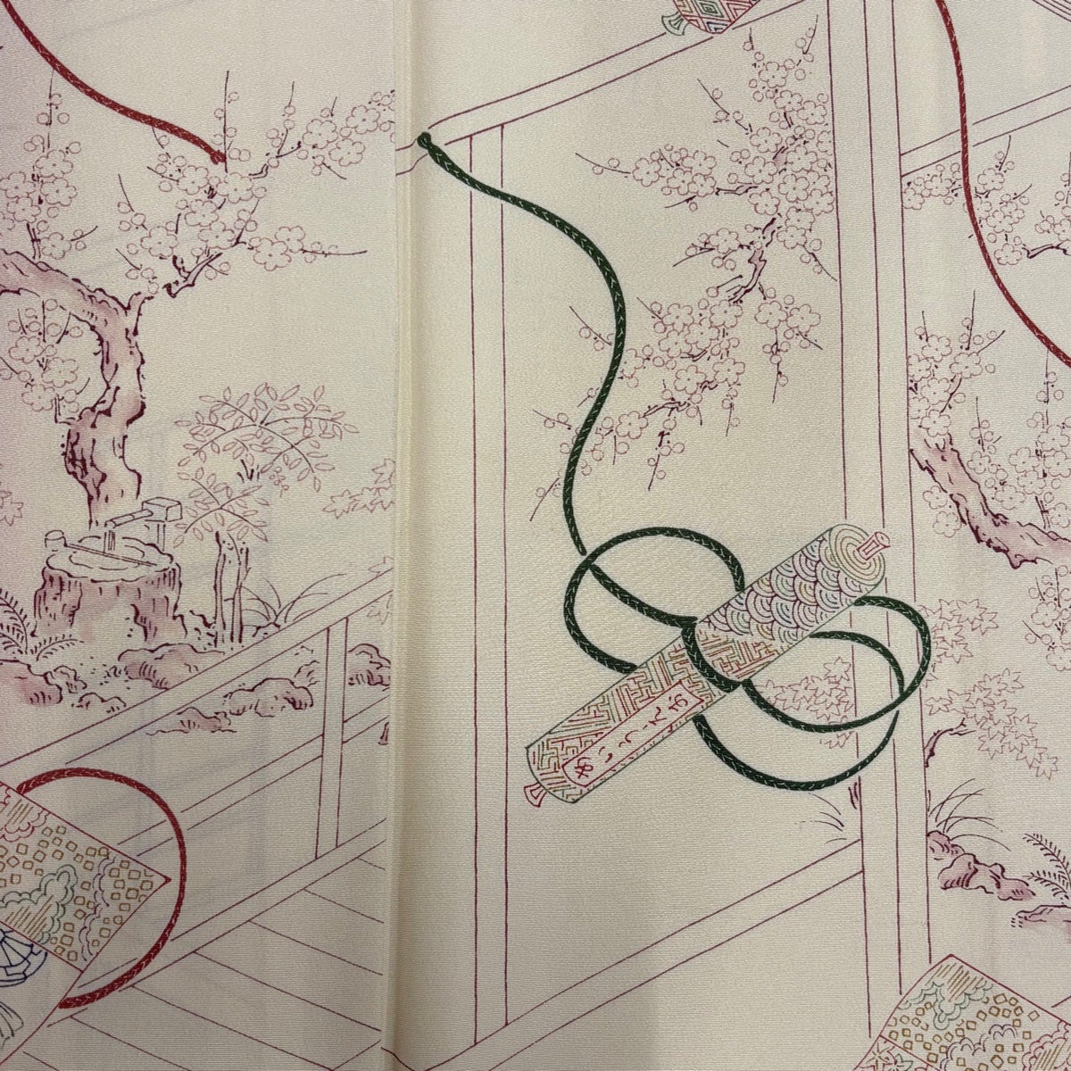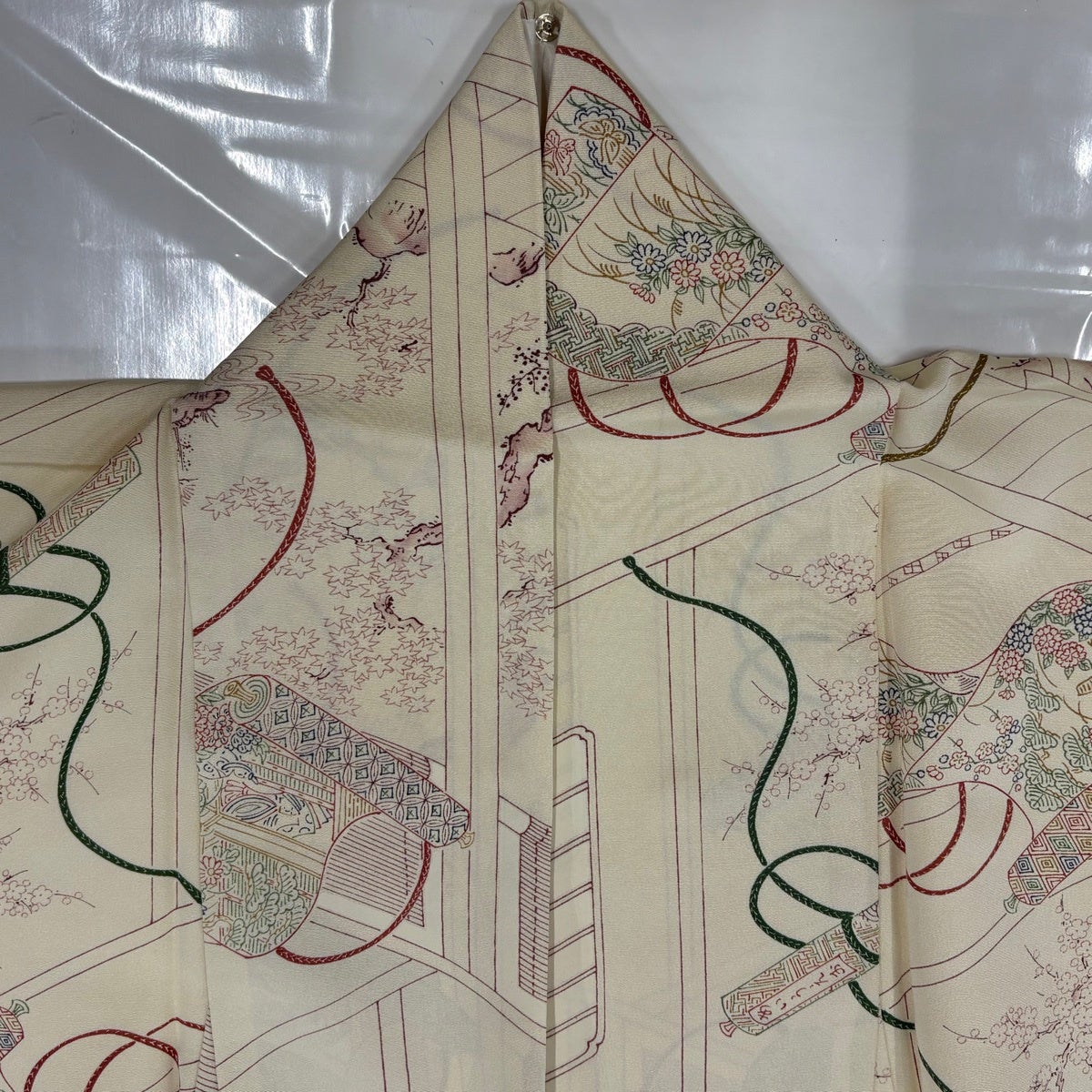 小紋 身丈157cm 裄丈62cm S 袷 反物 松梅 クリーム 正絹 優品