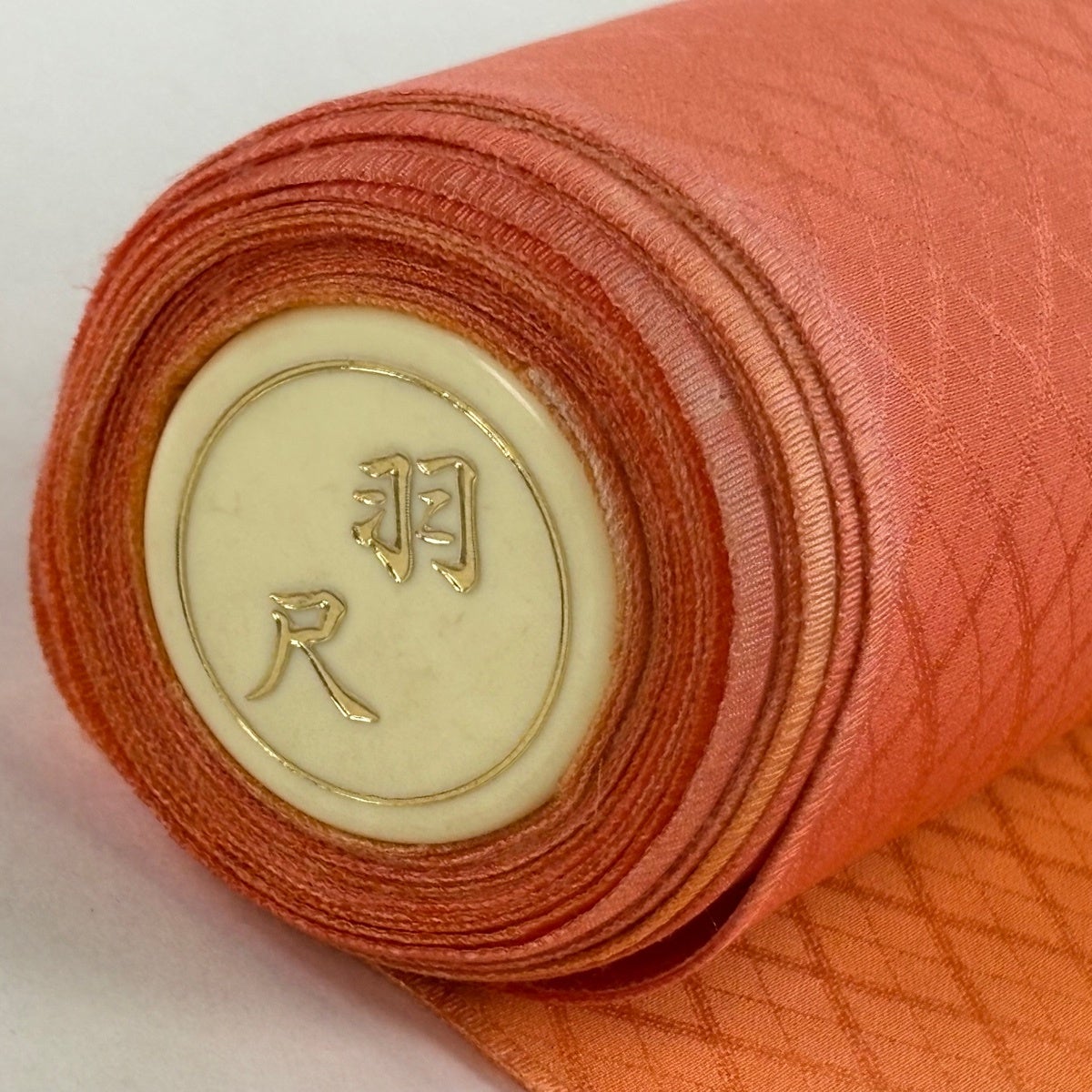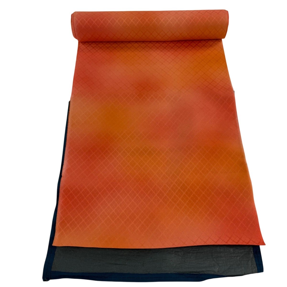 反物 優品 羽尺 羽織 和装コート 地紋 斜め格子 ぼかし オレンジ 正絹