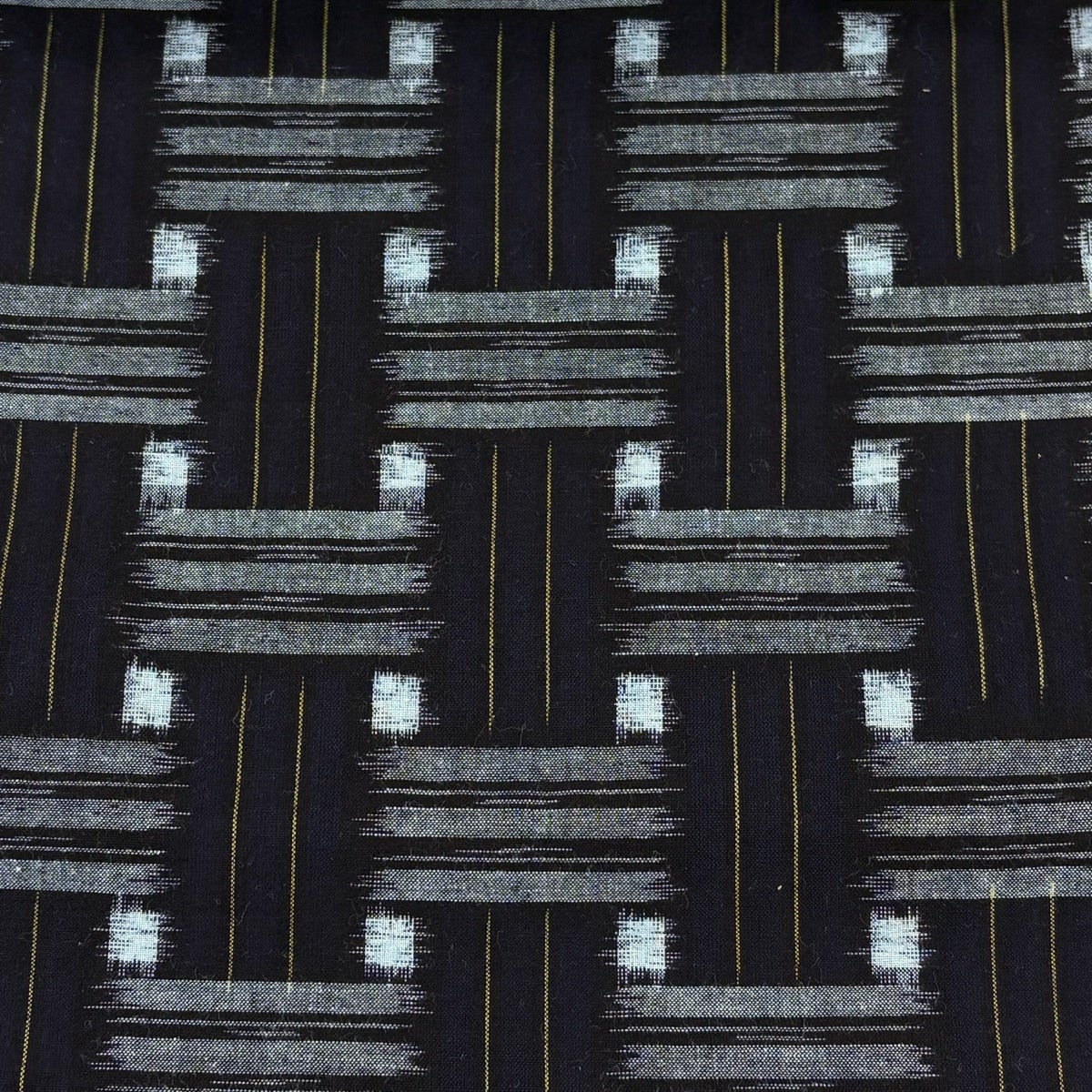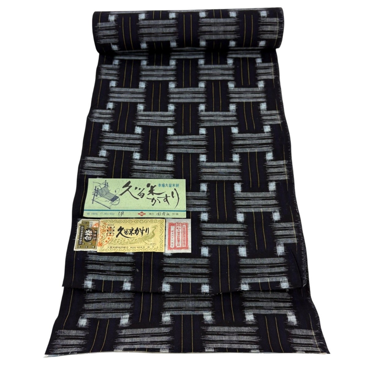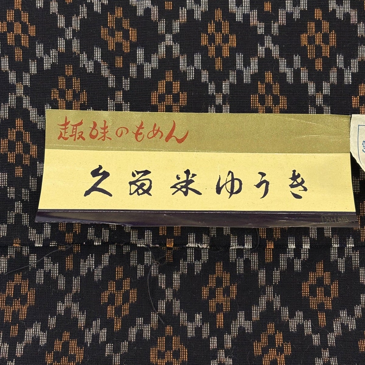 反物 逸品 紬 久留米絣 久留米かすり 証紙 井桁絣 幾何学模様 濃紺 綿
