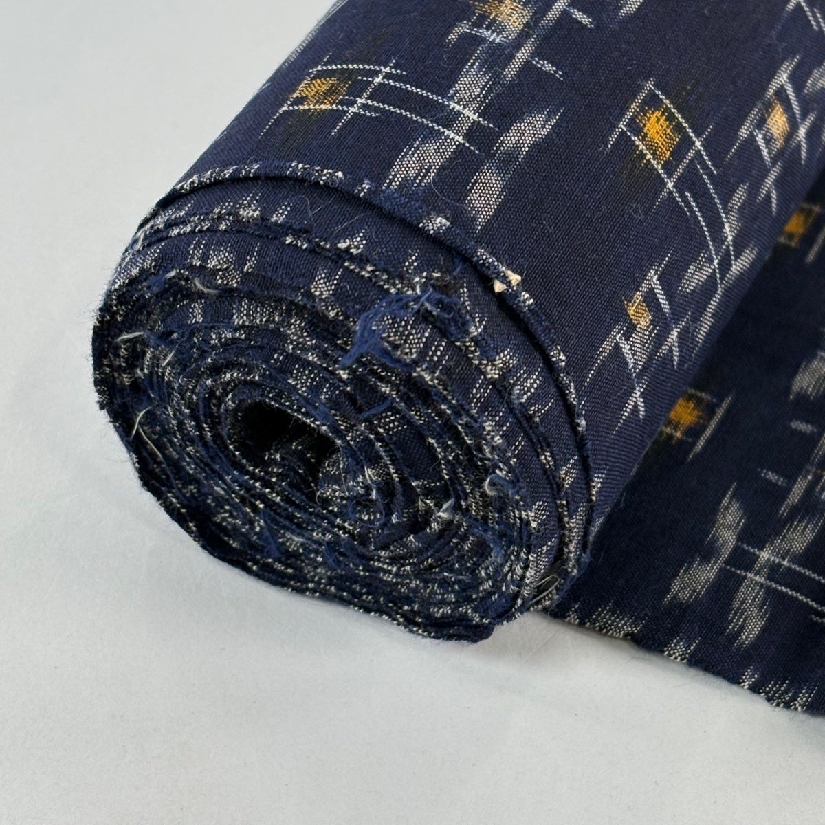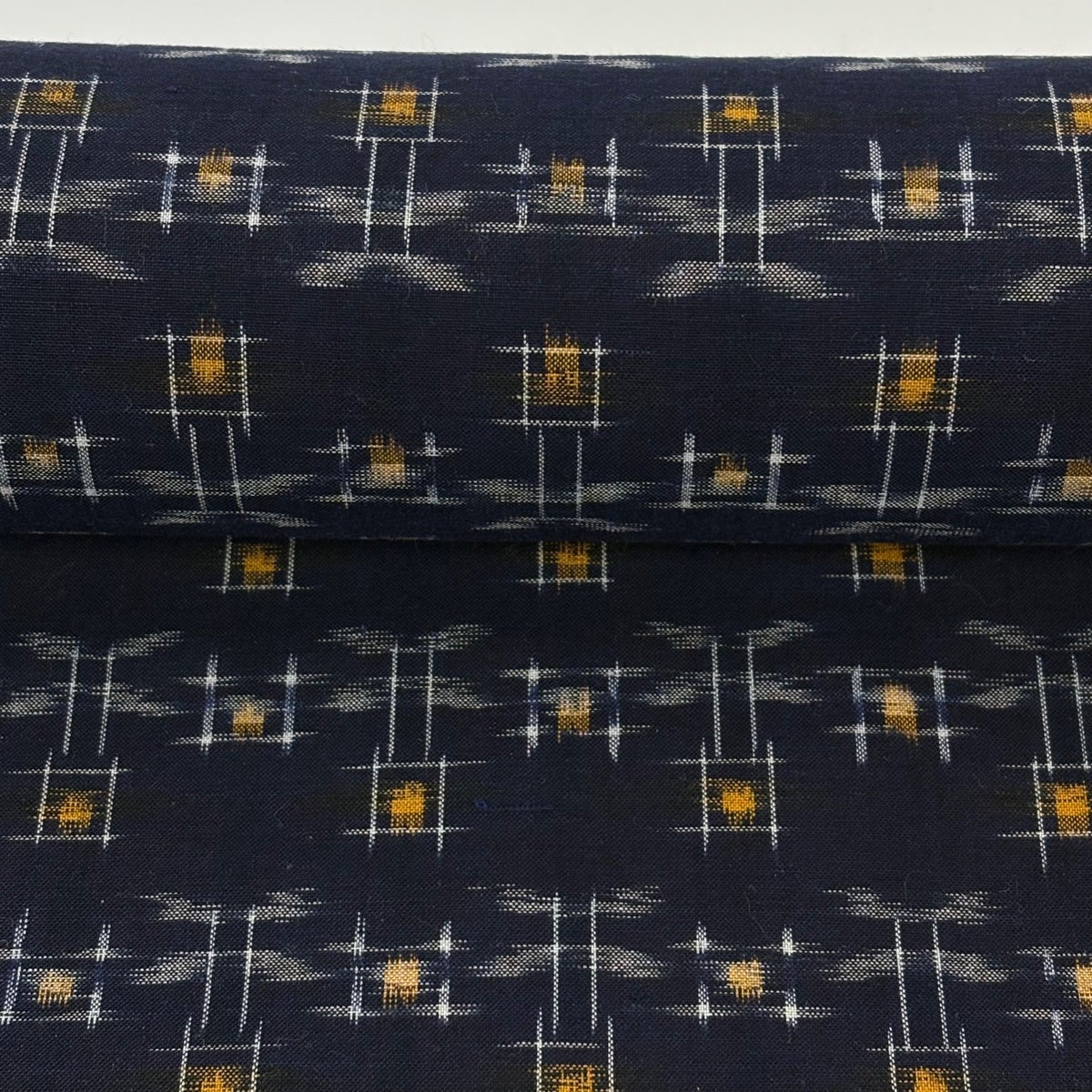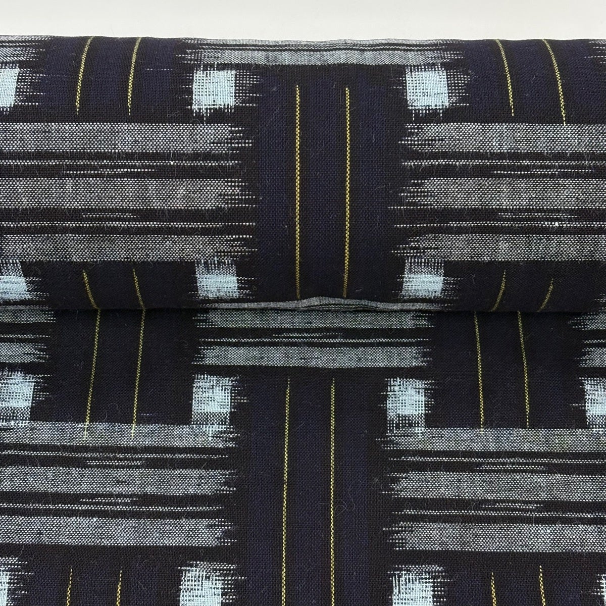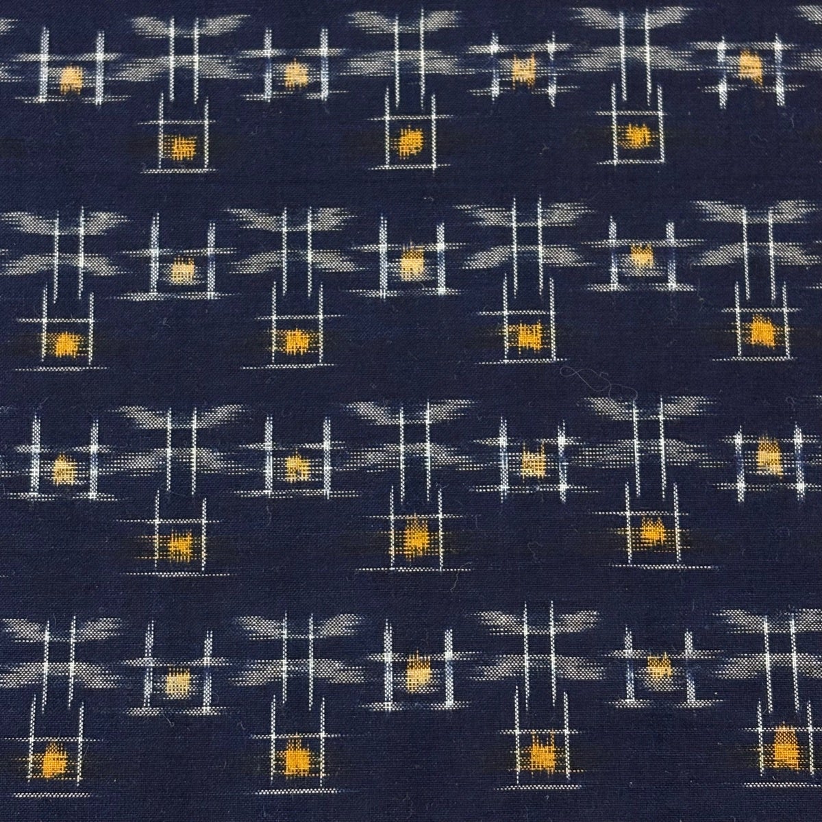 反物 逸品 紬 久留米絣 久留米かすり 証紙 井桁絣 幾何学模様 濃紺 綿