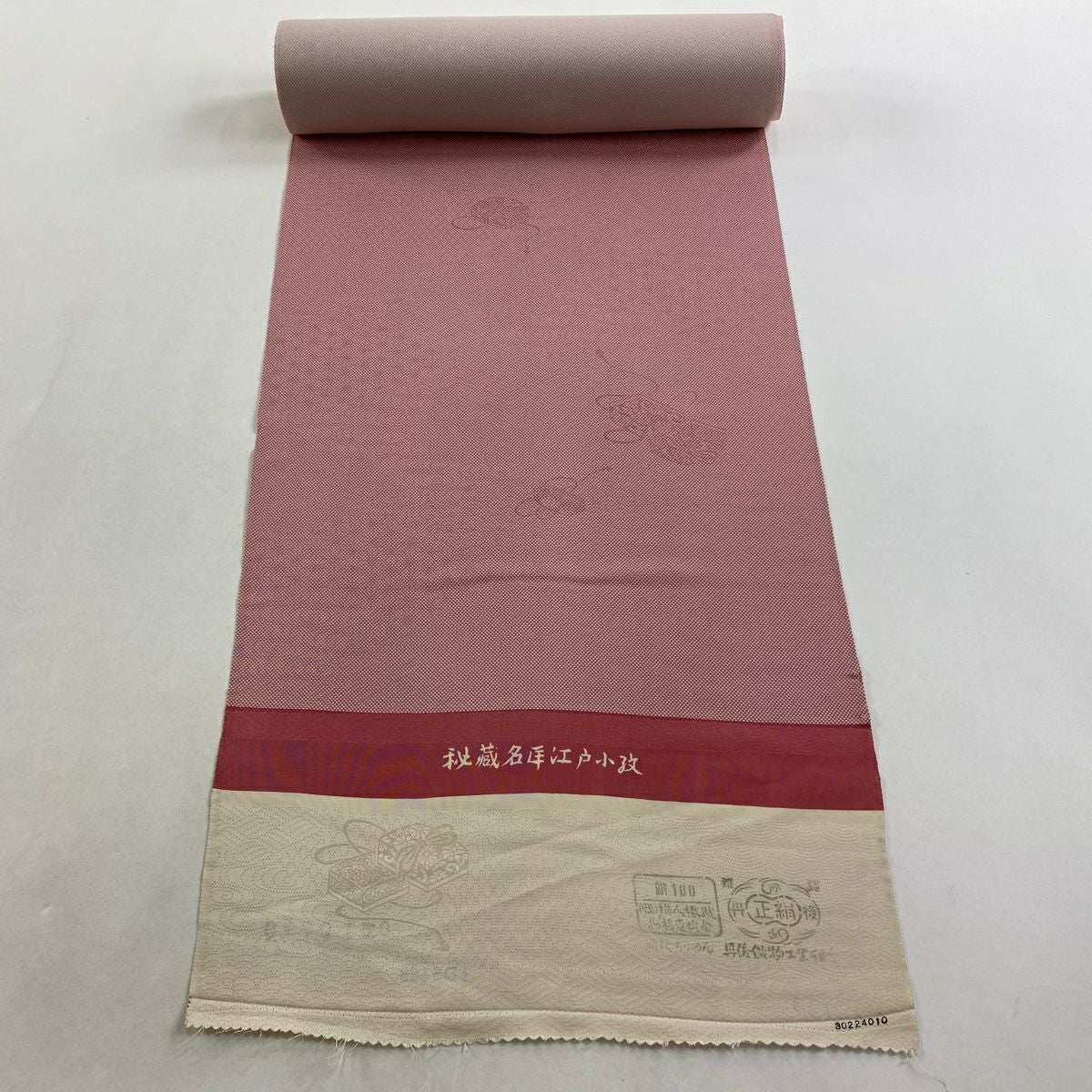 反物 秀品 小紋 加賀友禅 落款 幾何学模様 ピンクベージュ 正絹