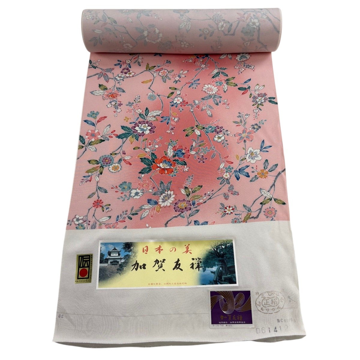 反物 秀品 小紋 枝花 ぼかし ピンク 正絹