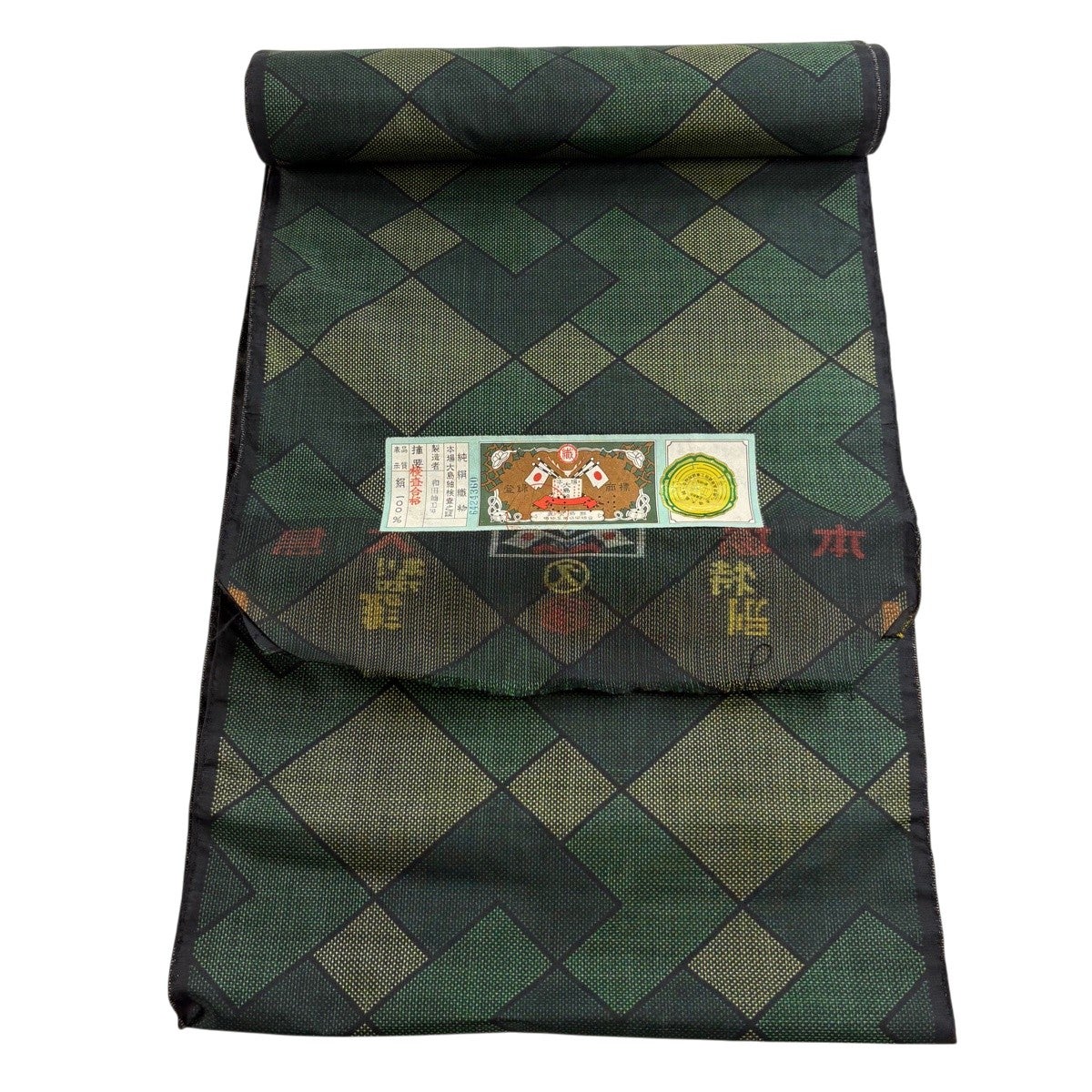反物 秀品 大島紬 証紙 菱 幾何学 緑 正絹