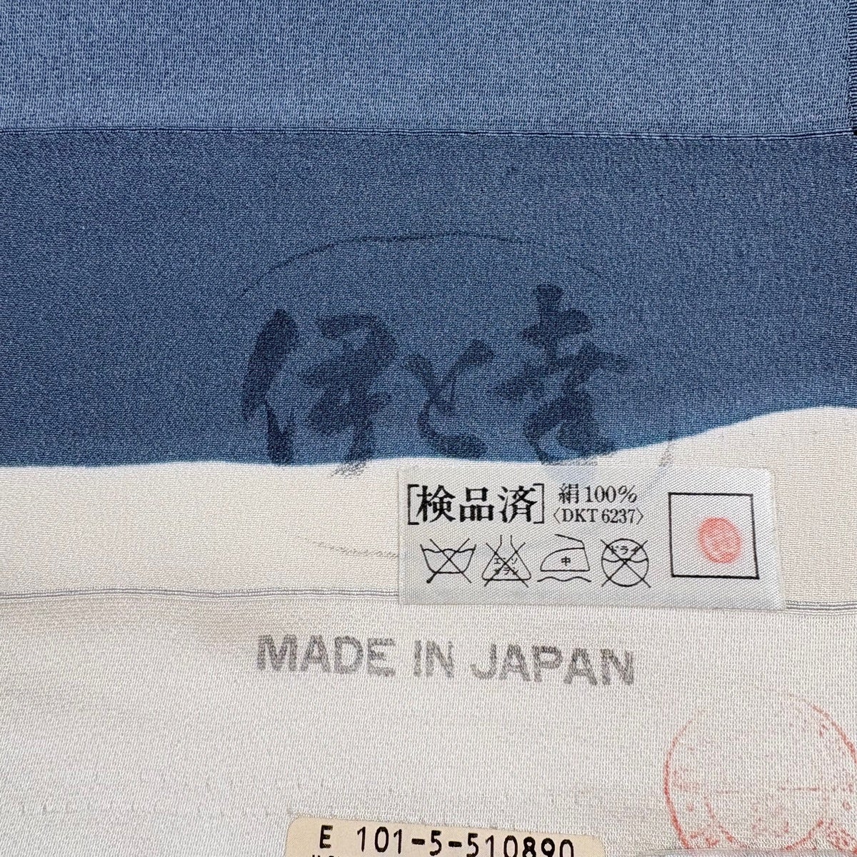反物 秀品 付下げ 草花 霞 ぼかし 金彩 紺色 正絹