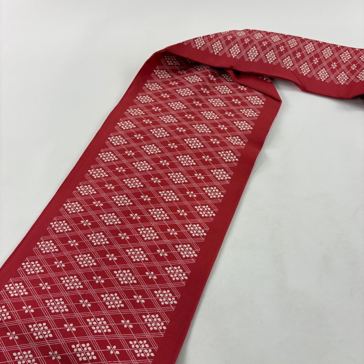 名古屋帯 秀品 草花 菱 灰白 正絹