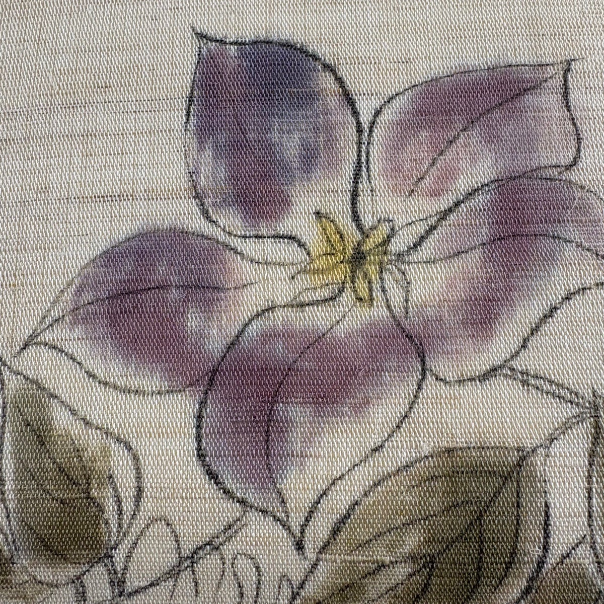 名古屋帯 秀品 夏帯 草花 薄茶色 麻
