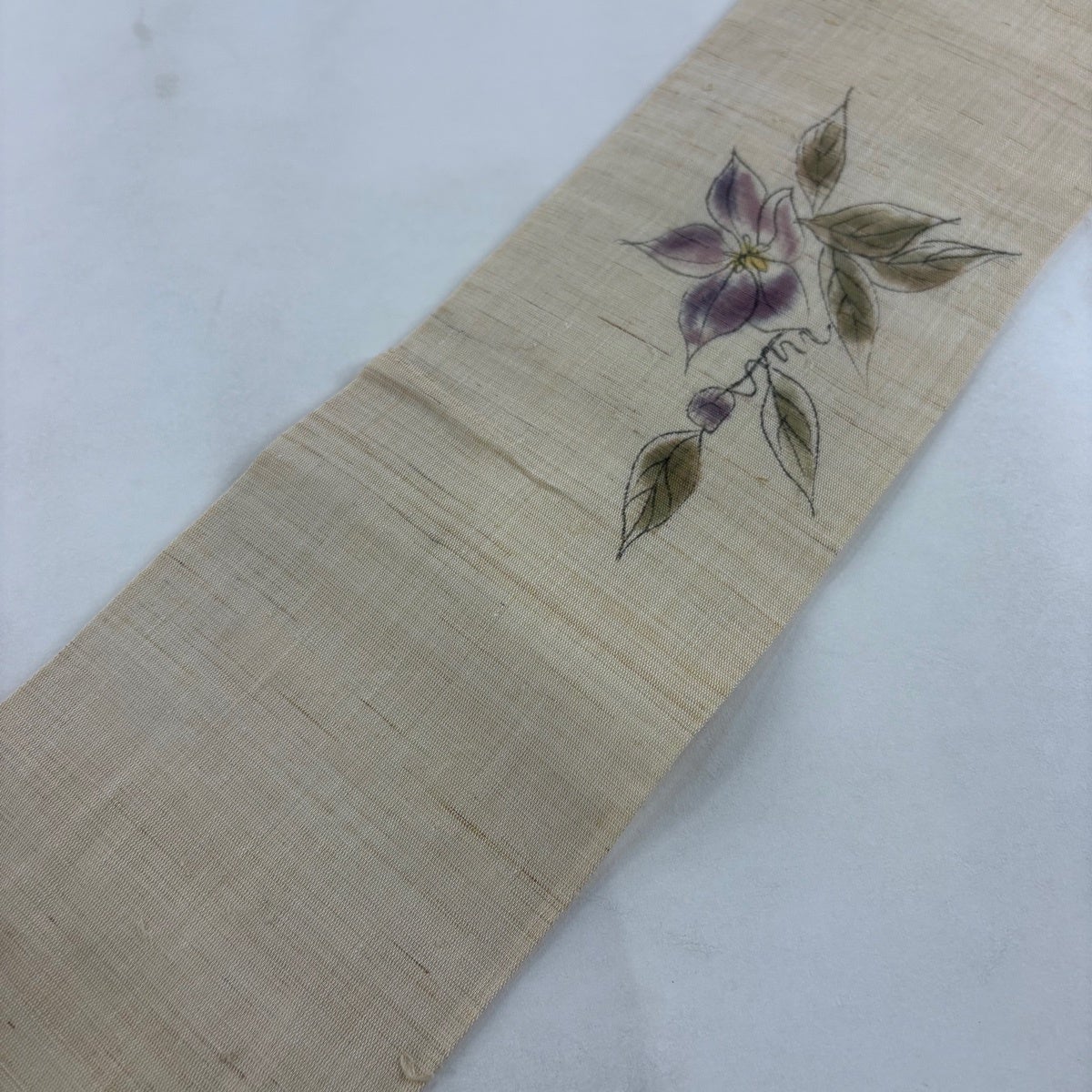 名古屋帯 秀品 草花 ベージュ 麻