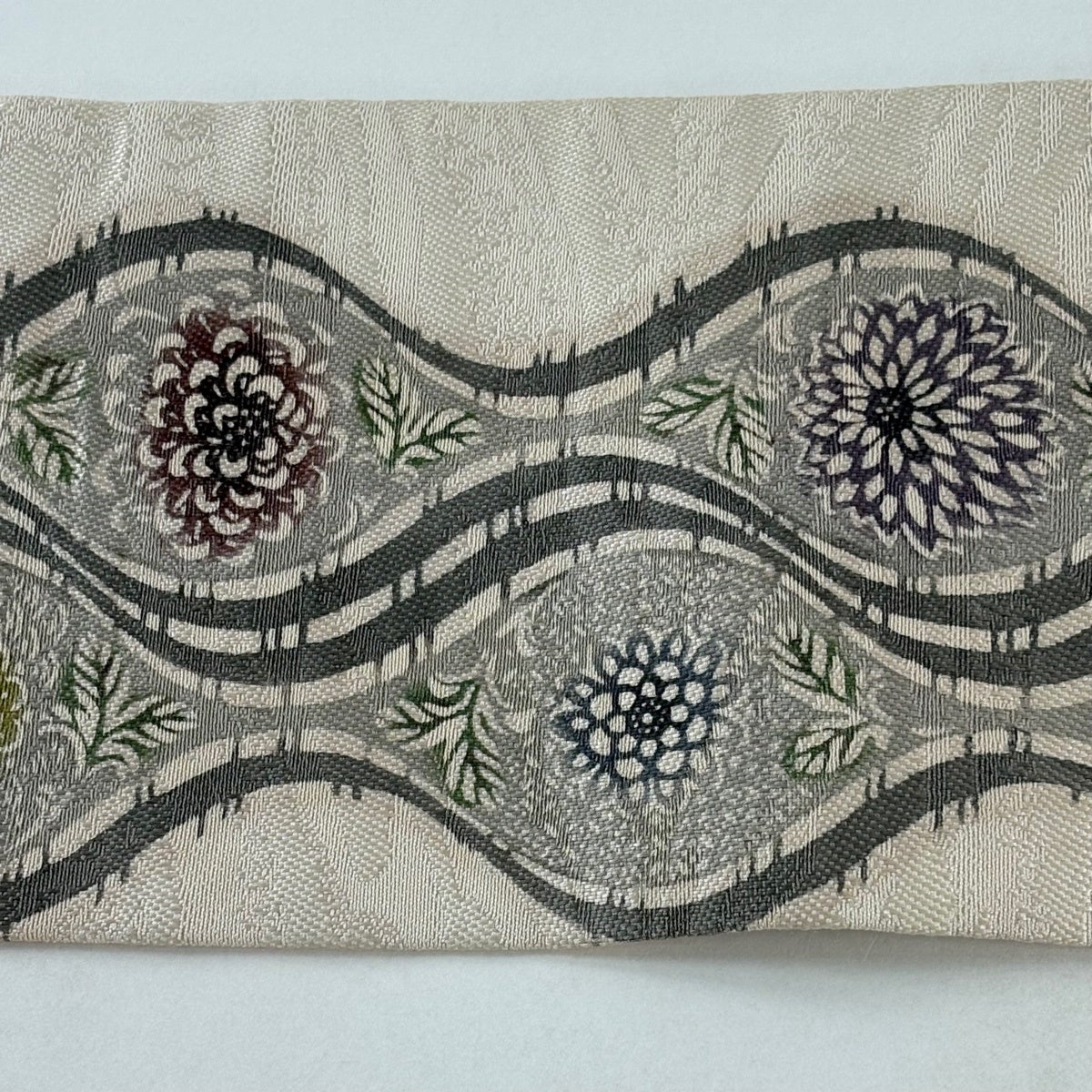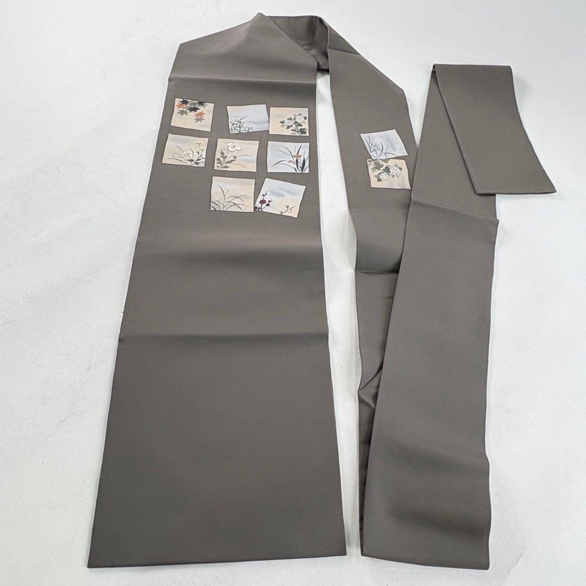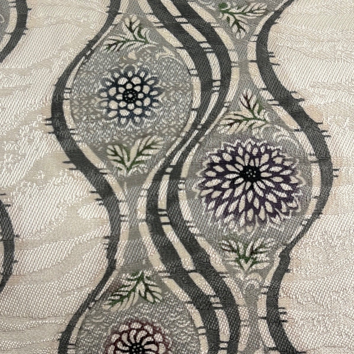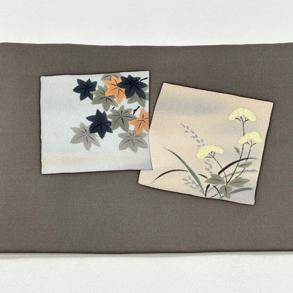 名古屋帯 秀品 夏帯 草花 灰茶 正絹