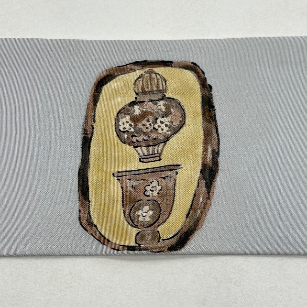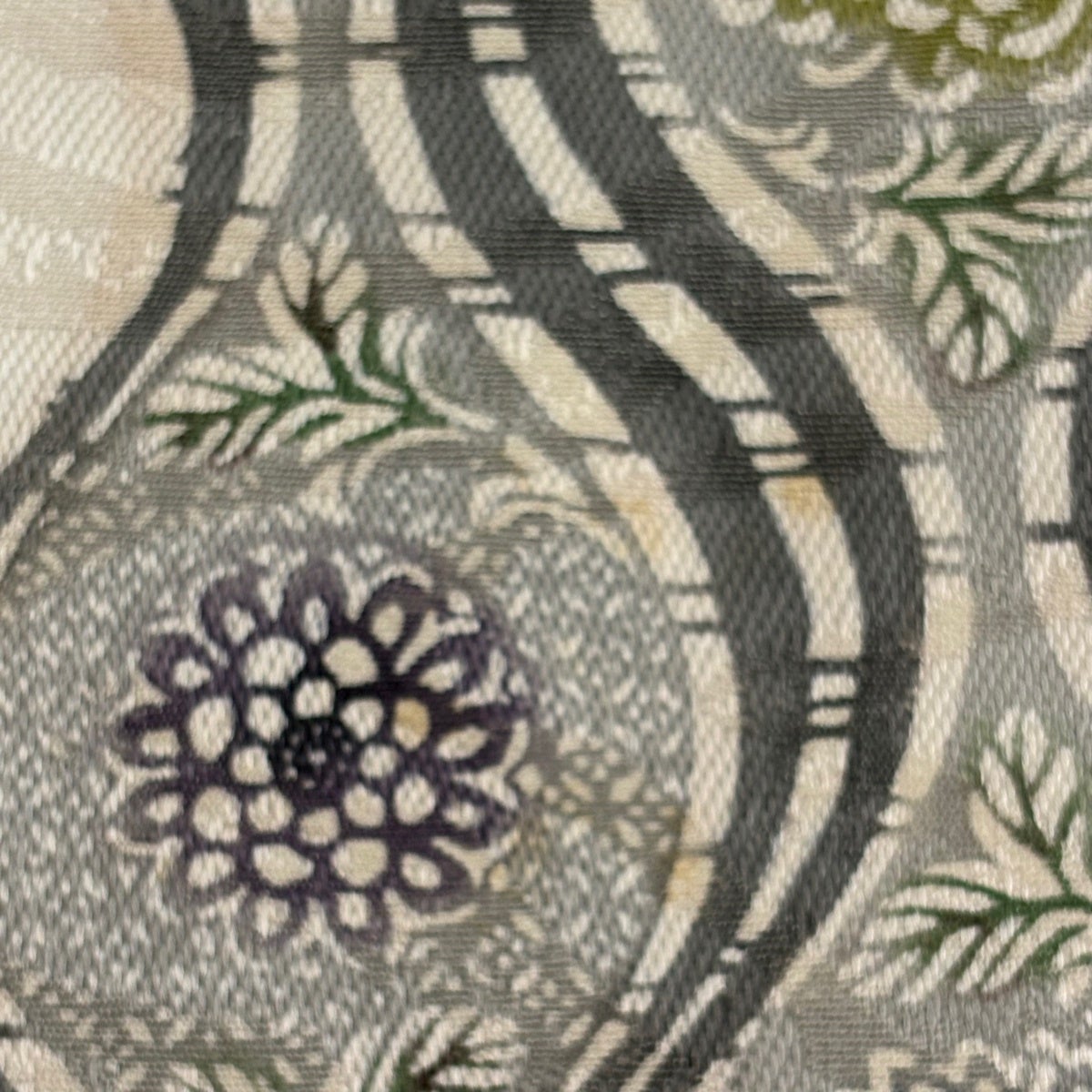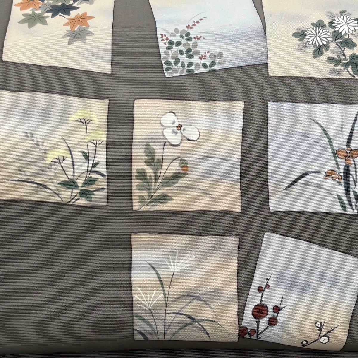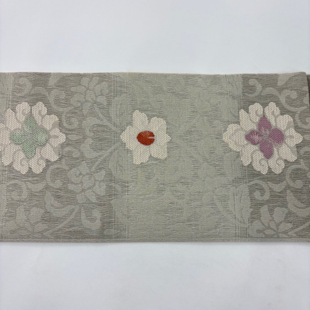 名古屋帯 秀品 夏帯 草花 灰茶 正絹