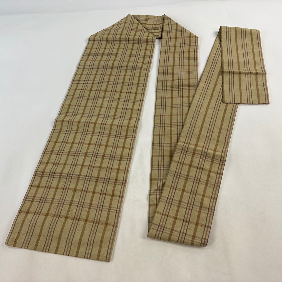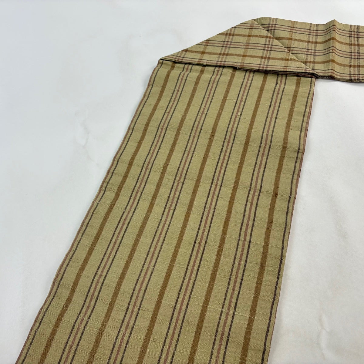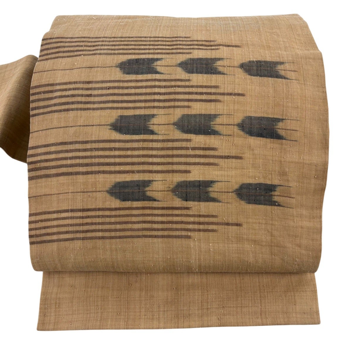 名古屋帯 逸品 矢羽 縞 薄茶色 芭蕉