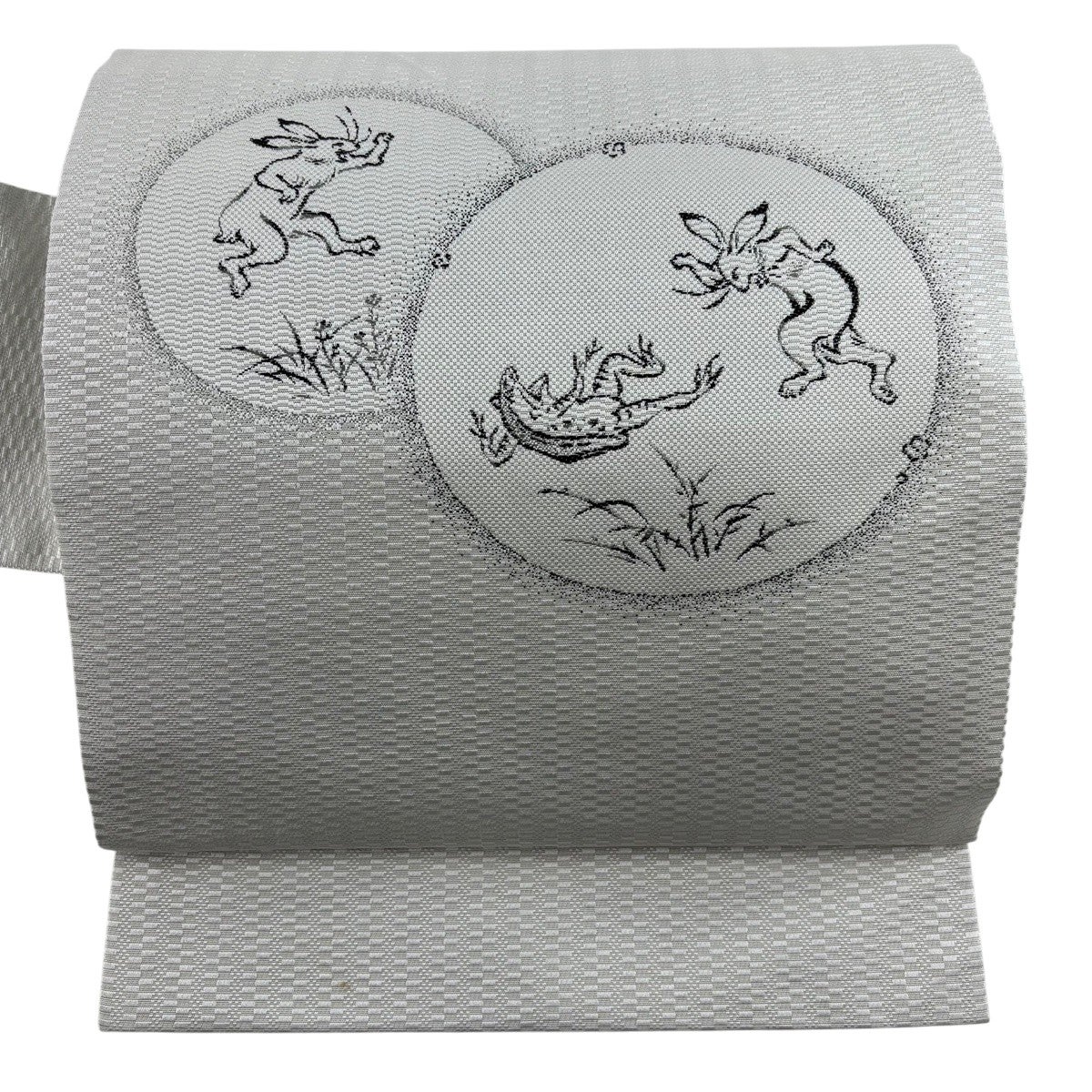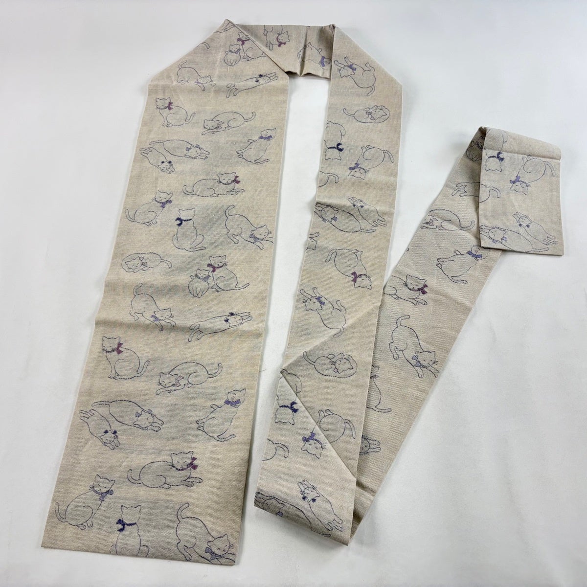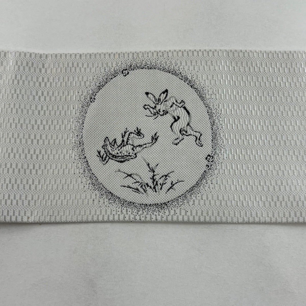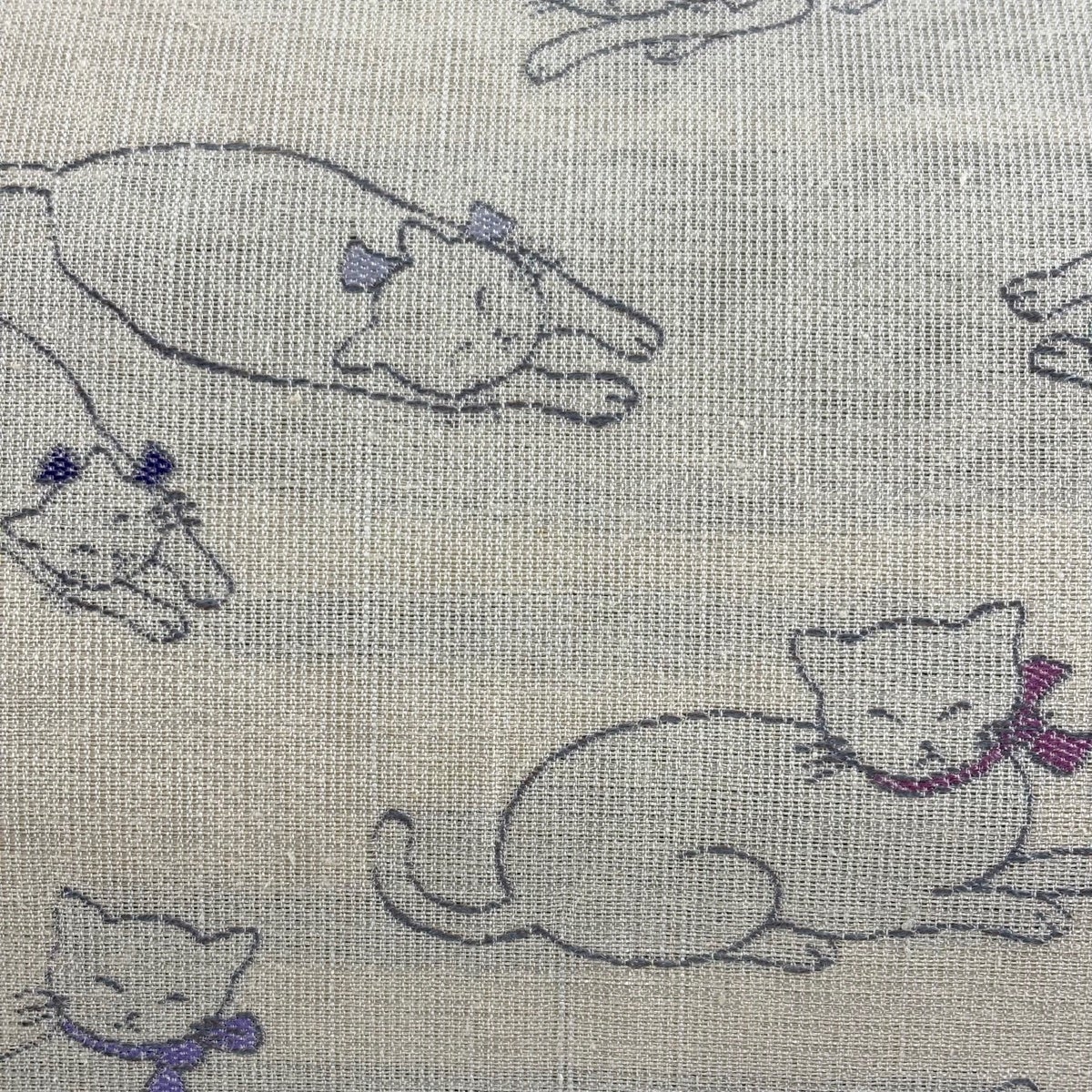 名古屋帯 逸品 猫 音符 縮緬 黒 正絹
