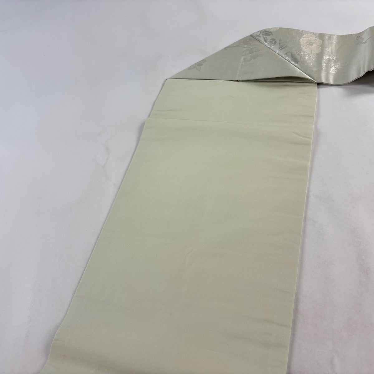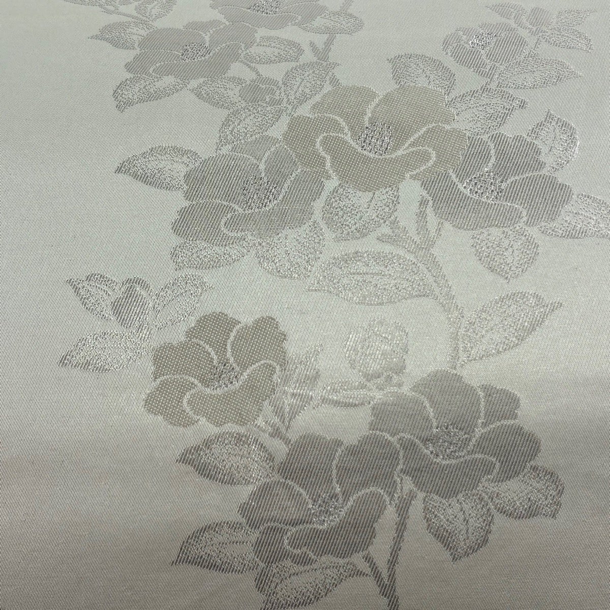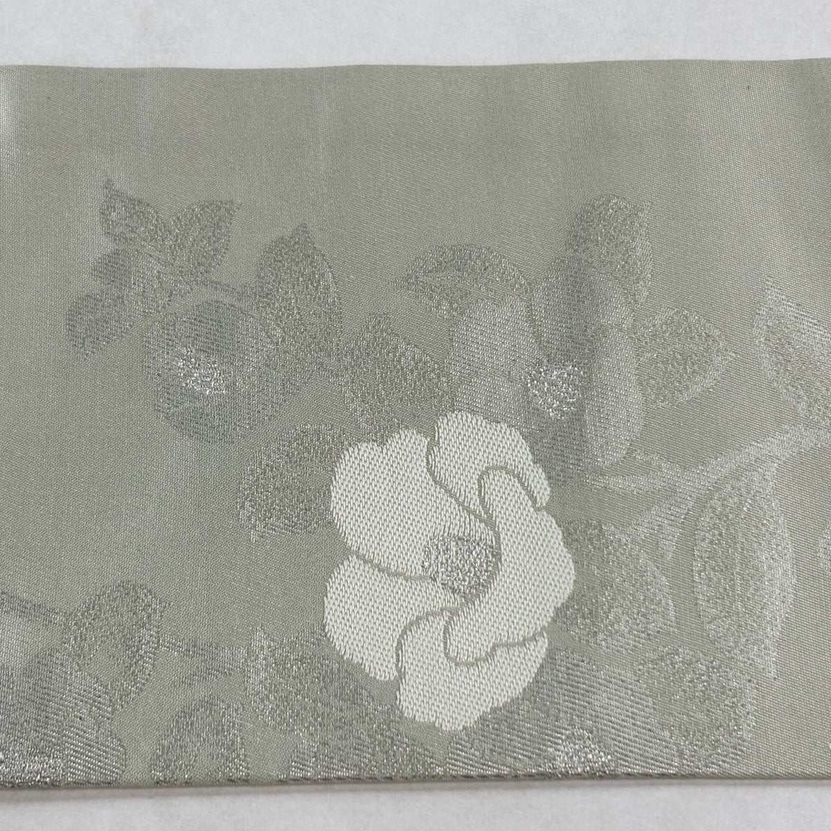 名古屋帯 優品 椿 金糸 箔 薄緑 正絹