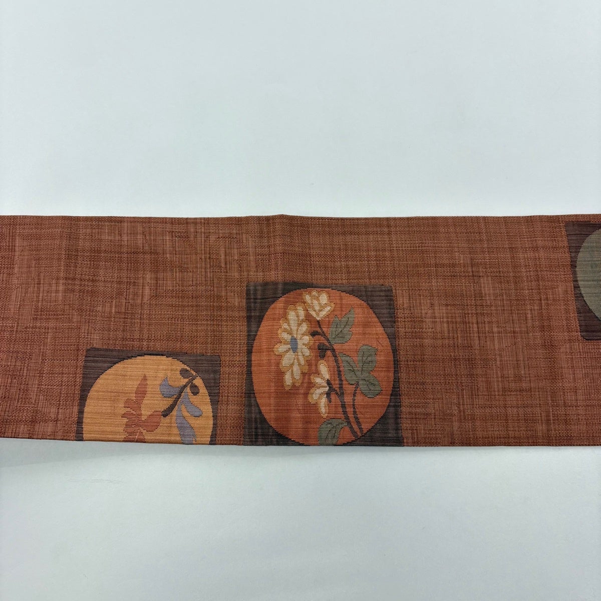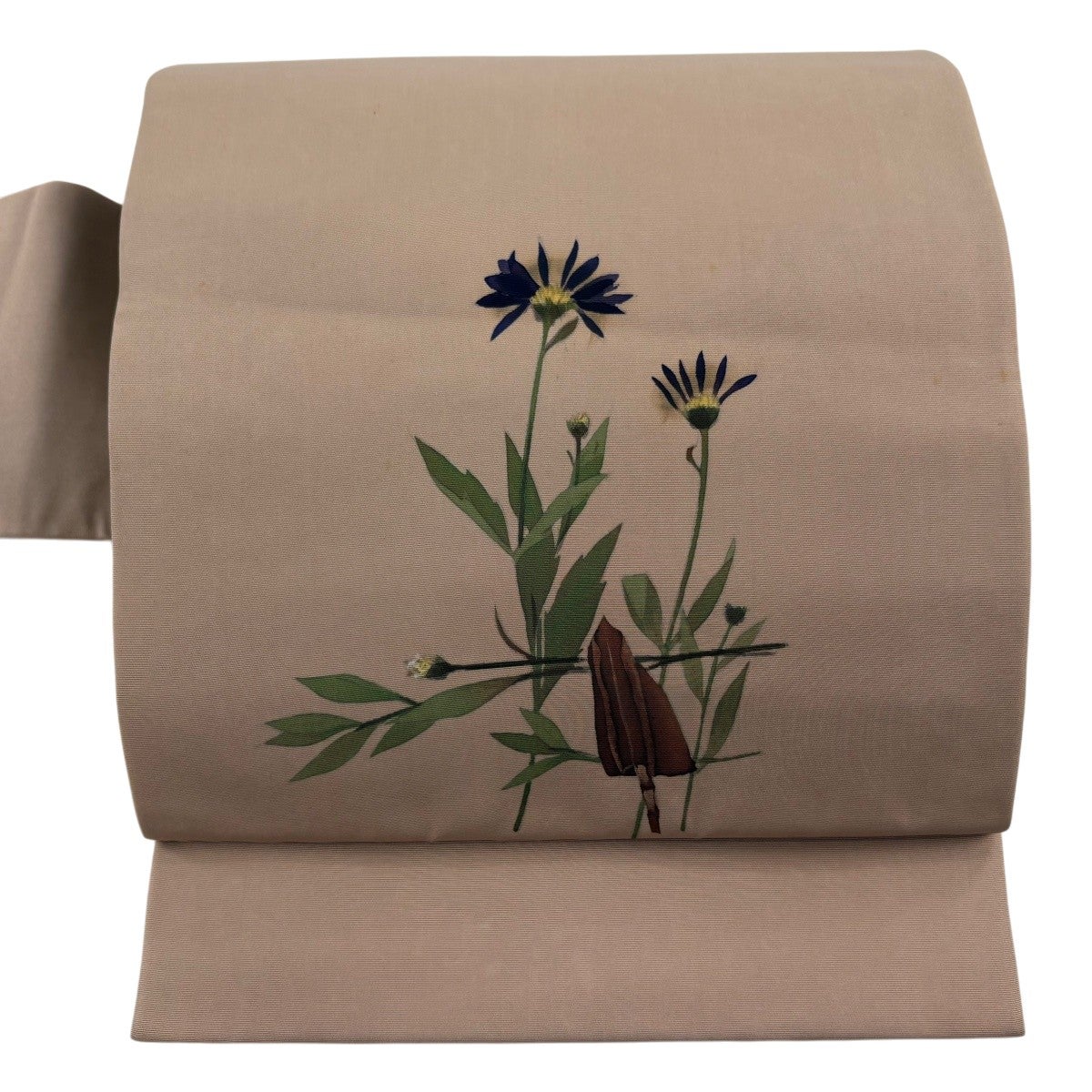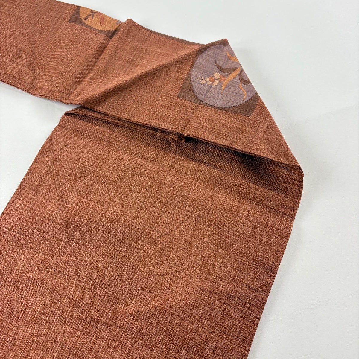 名古屋帯 秀品 夏紬地 花籠 薄茶色 麻