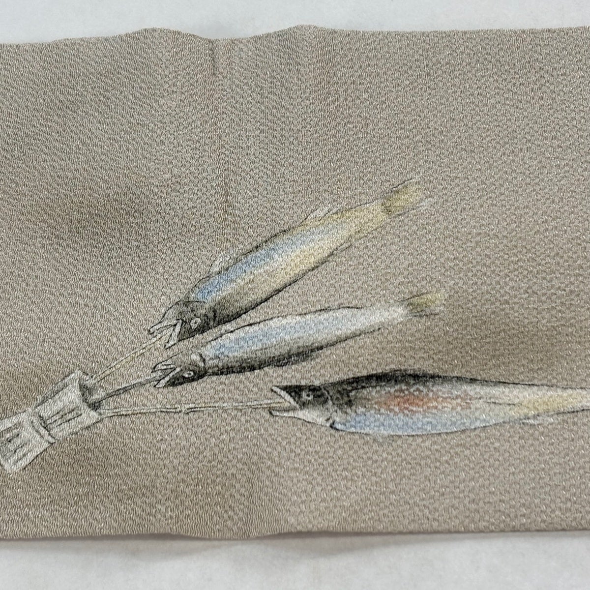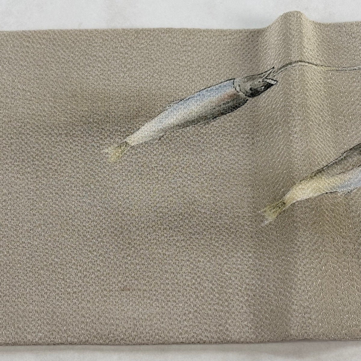 名古屋帯 秀品 魚 蟹 金彩 灰紫 正絹