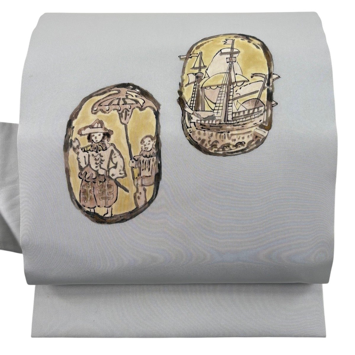 名古屋帯 秀品 南蛮船 人物 灰色 正絹