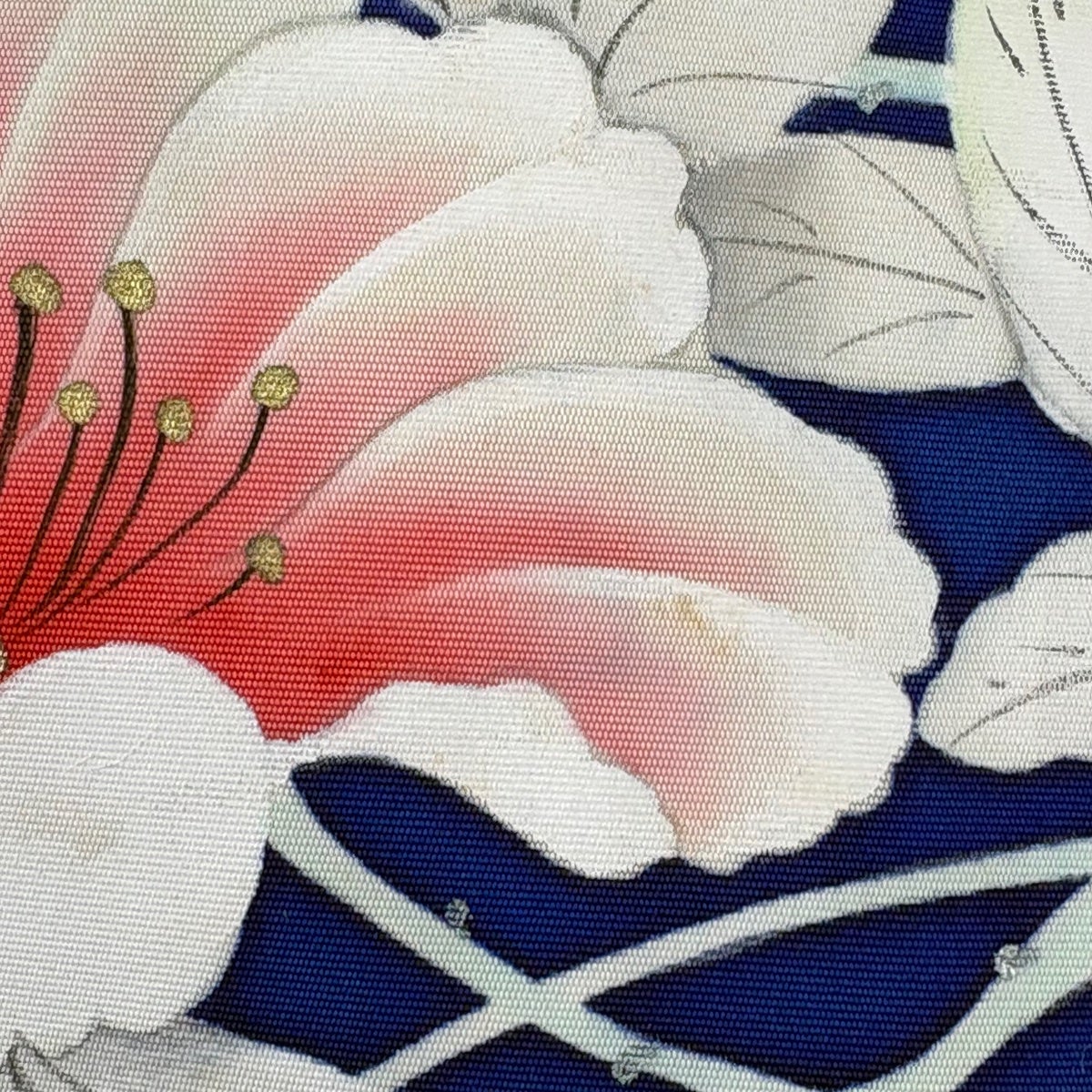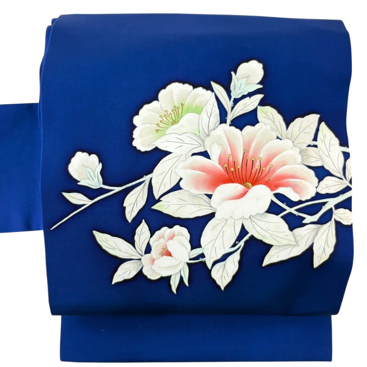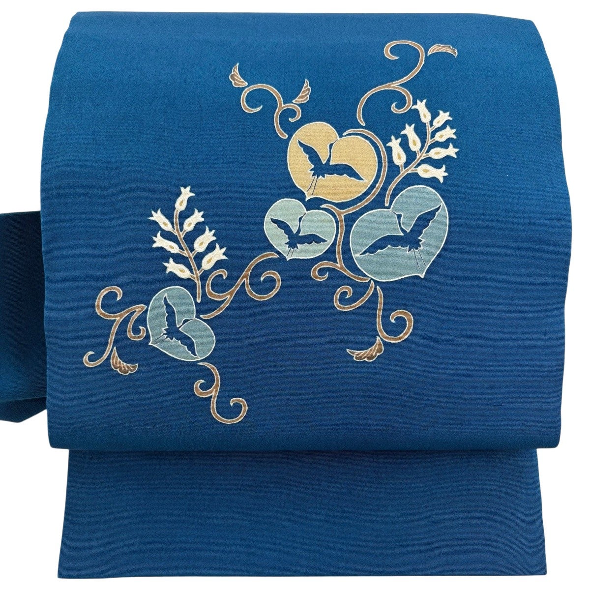 名古屋帯 優品 花 金銀糸 紺色 正絹