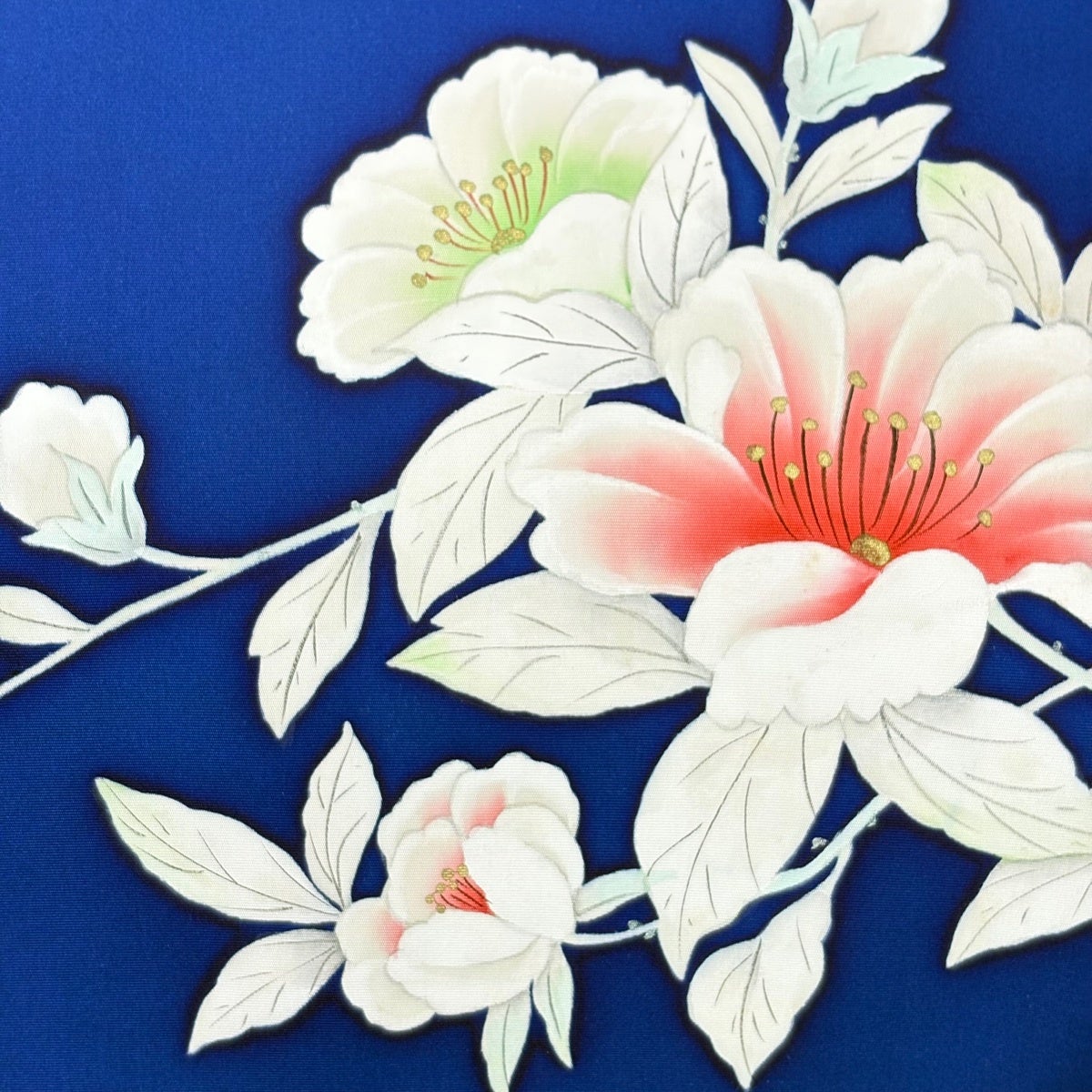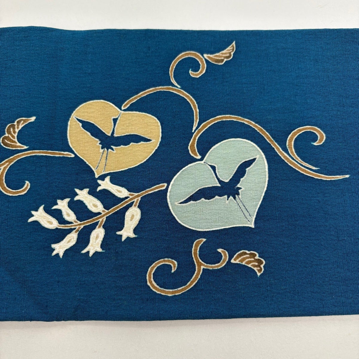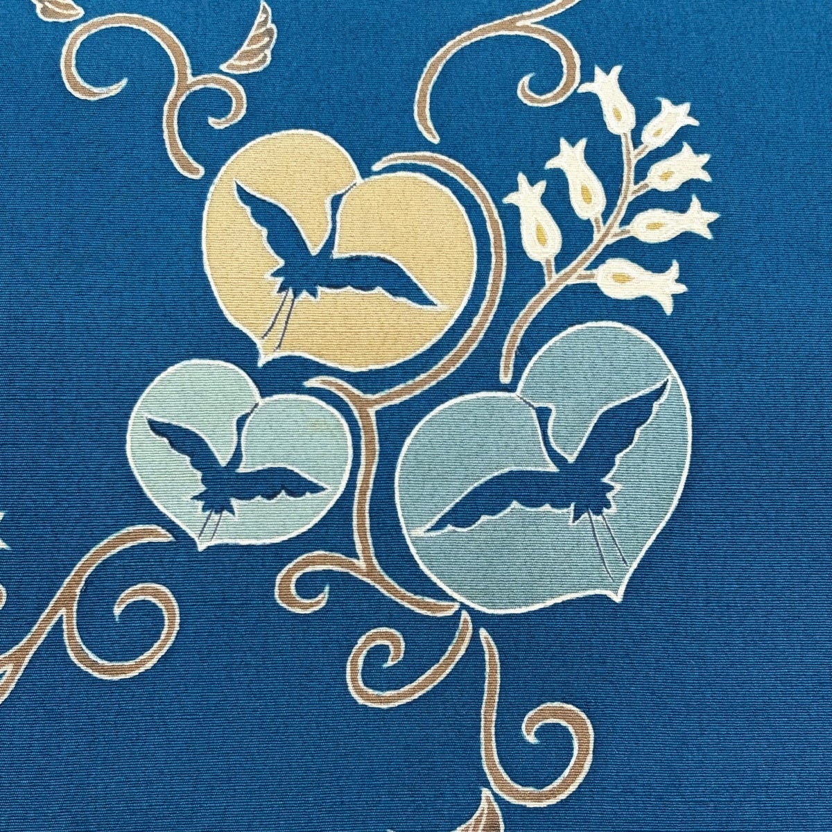 名古屋帯 優品 花 金銀糸 紺色 正絹