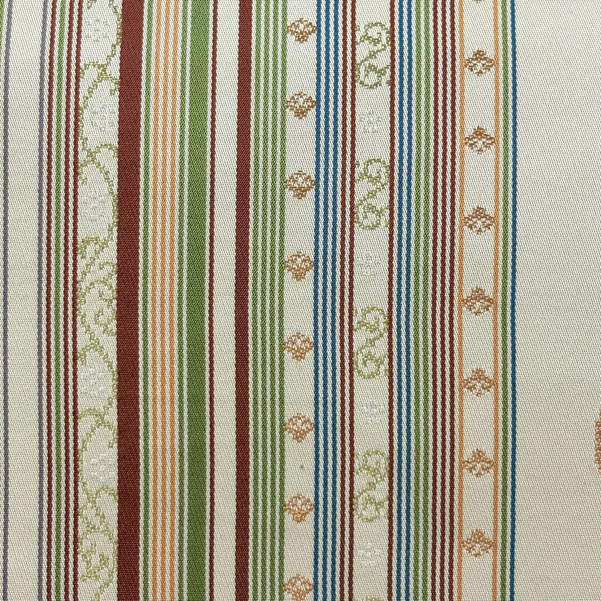 名古屋帯 秀品 花 縞 金糸 薄黄 正絹