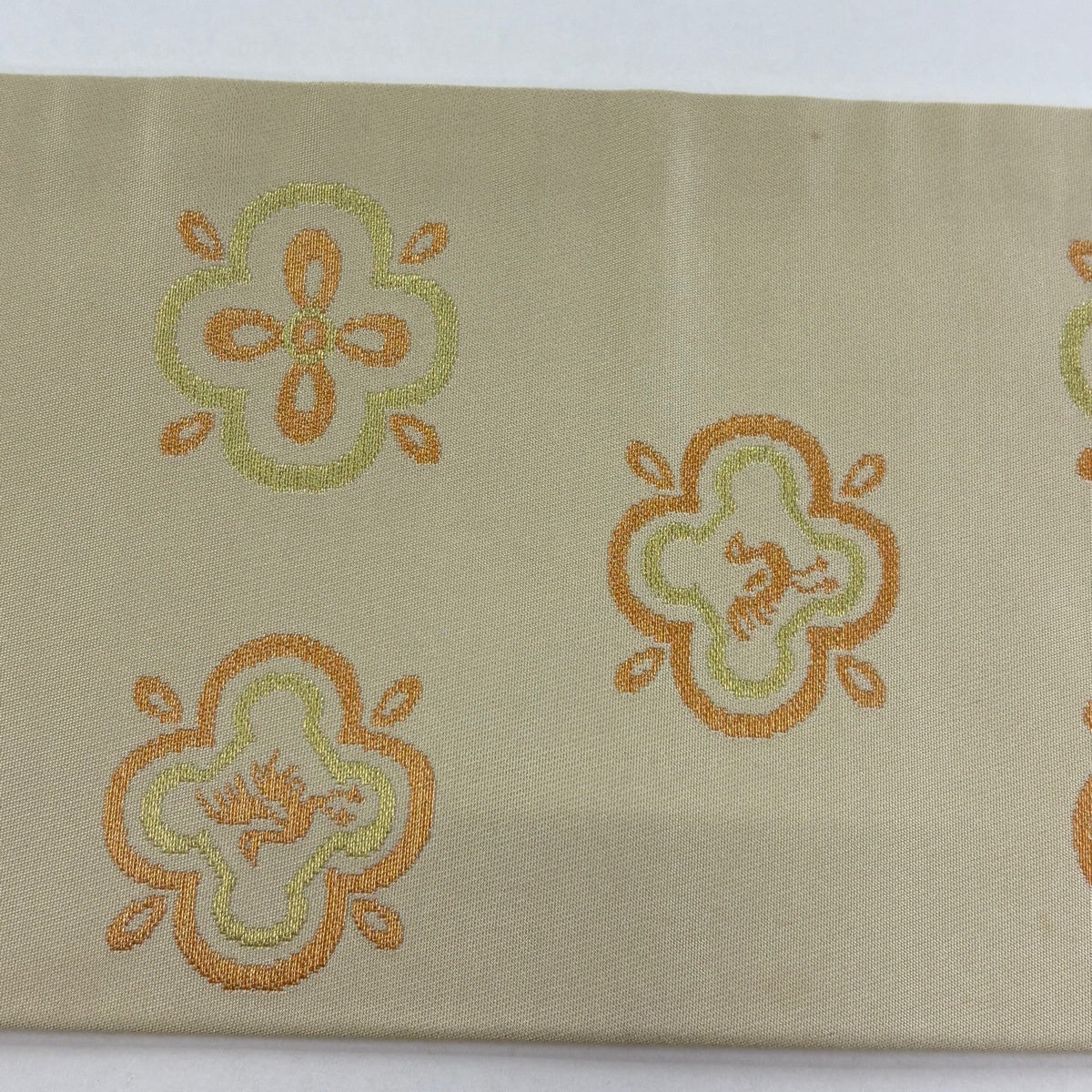 名古屋帯 秀品 幾何学模様 山吹色 正絹