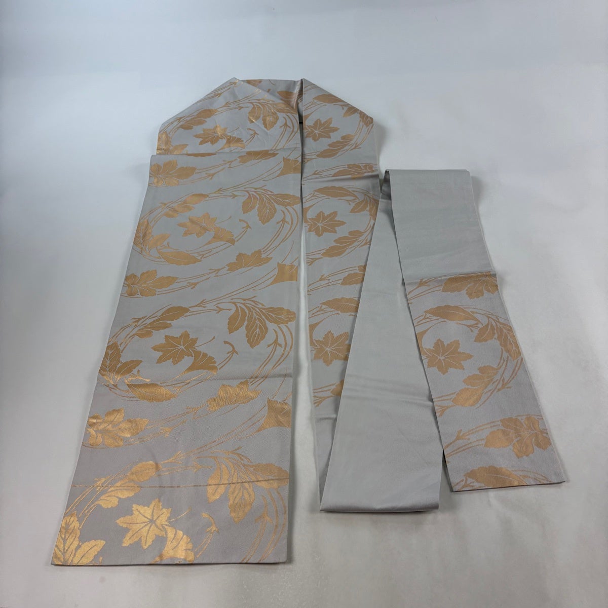 名古屋帯 優品 吹き寄せ 箔 灰色 正絹