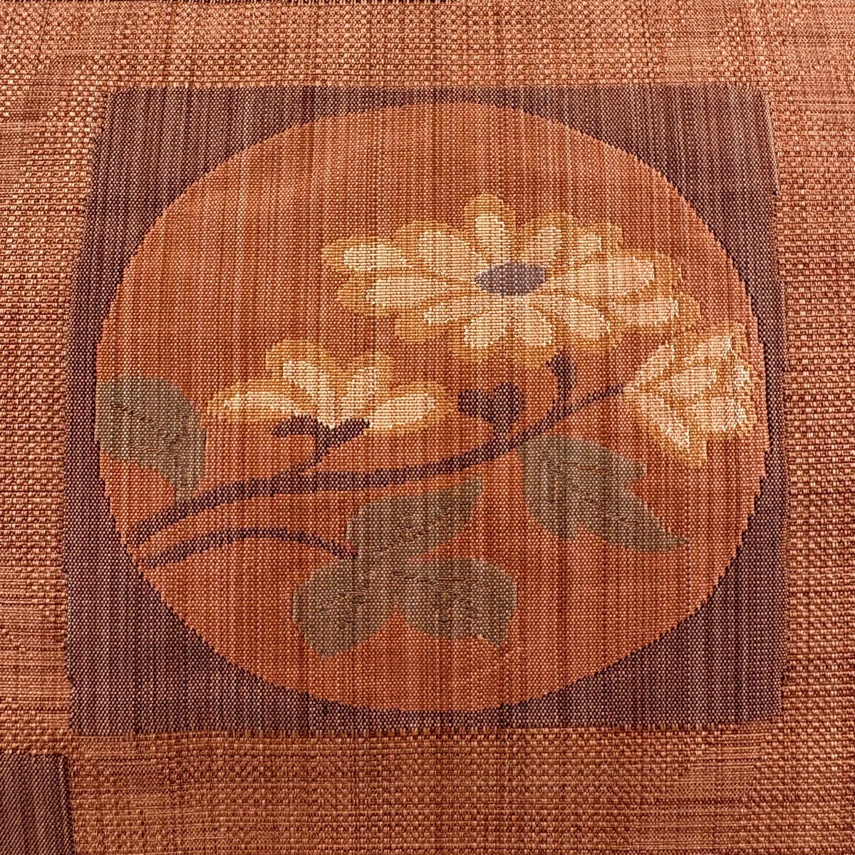 名古屋帯 秀品 柿 花菱 金彩 黒 正絹