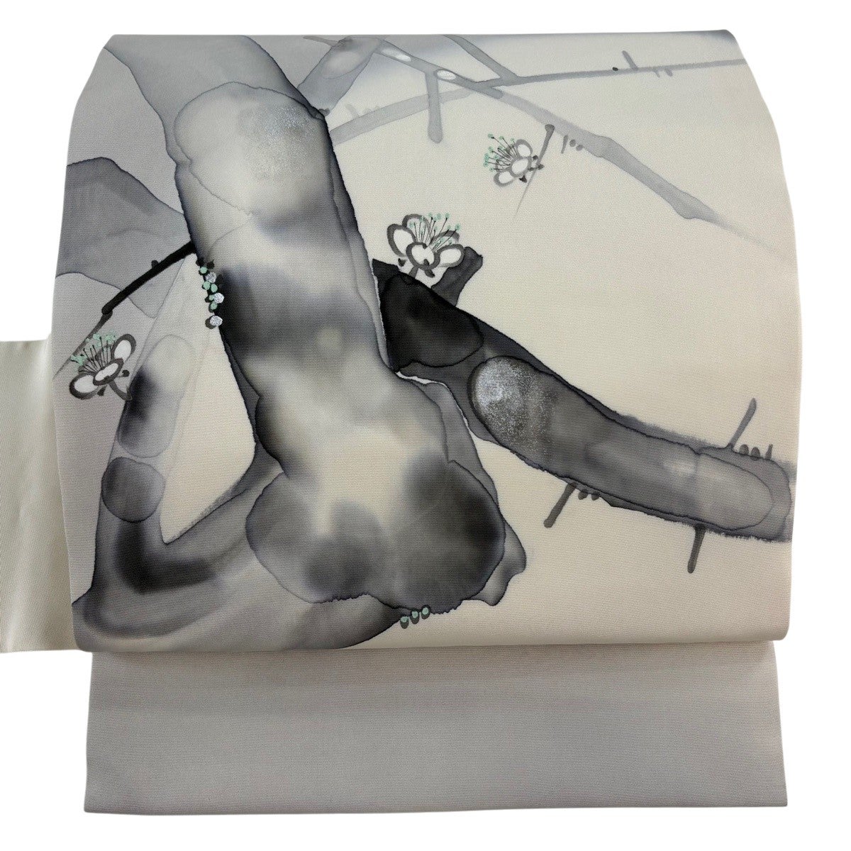 【美品】 名古屋帯 秀品 桜 雪輪 唐織 灰色 正絹