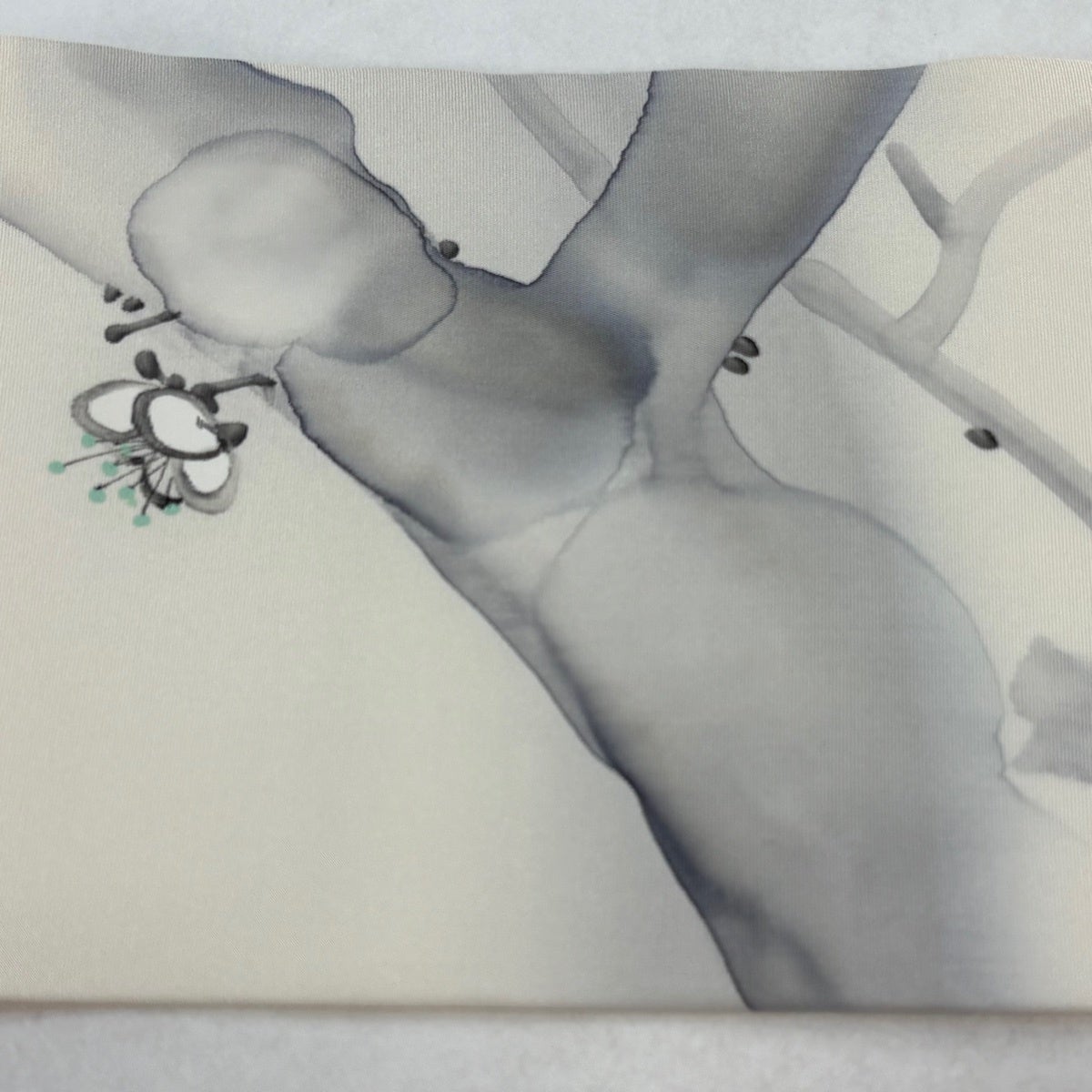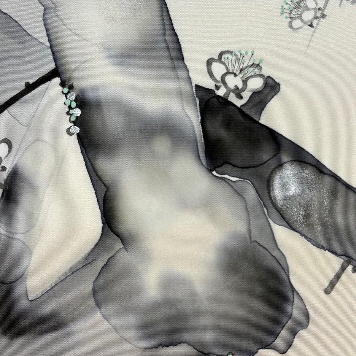 【美品】 名古屋帯 秀品 草花 よろけ縞 灰色 正絹