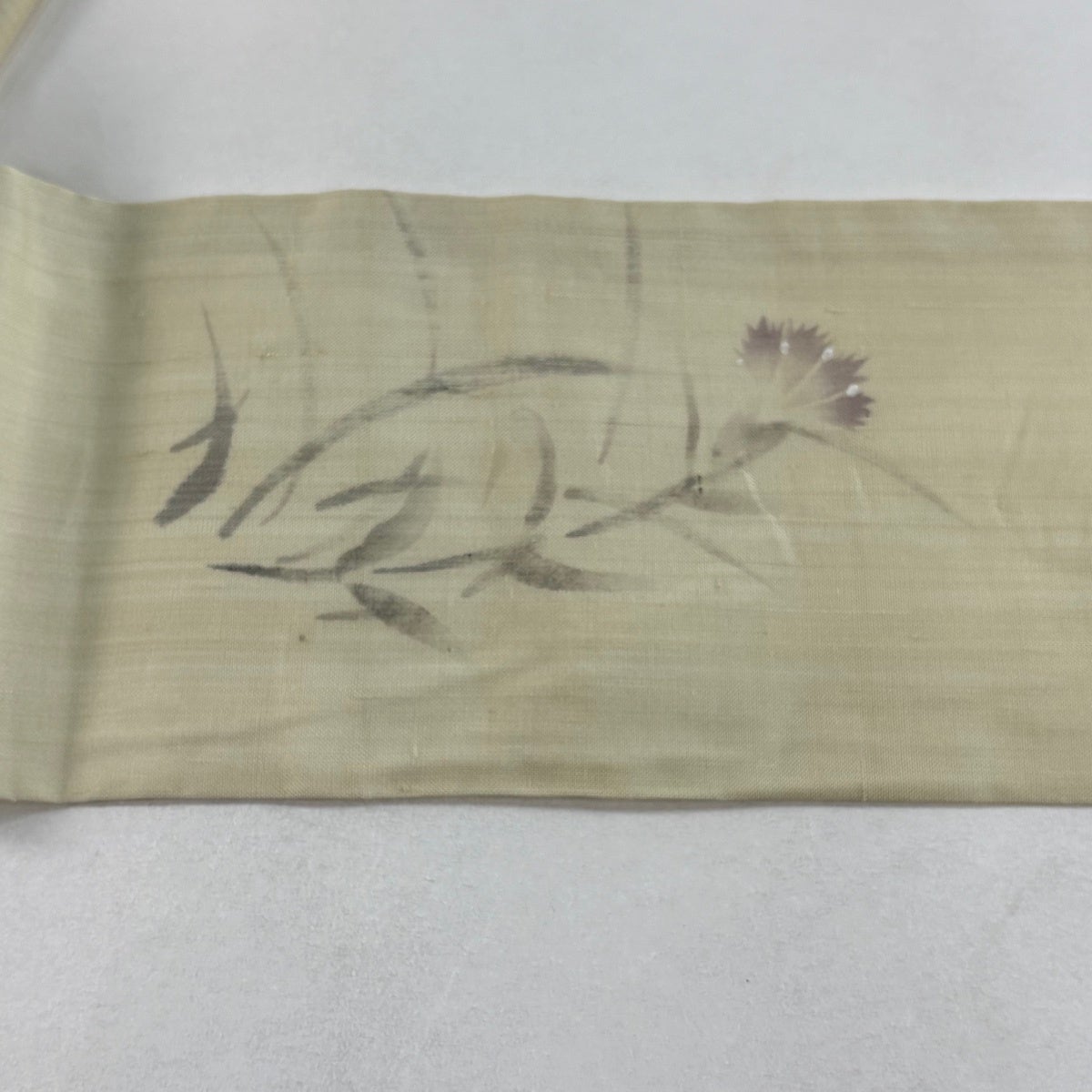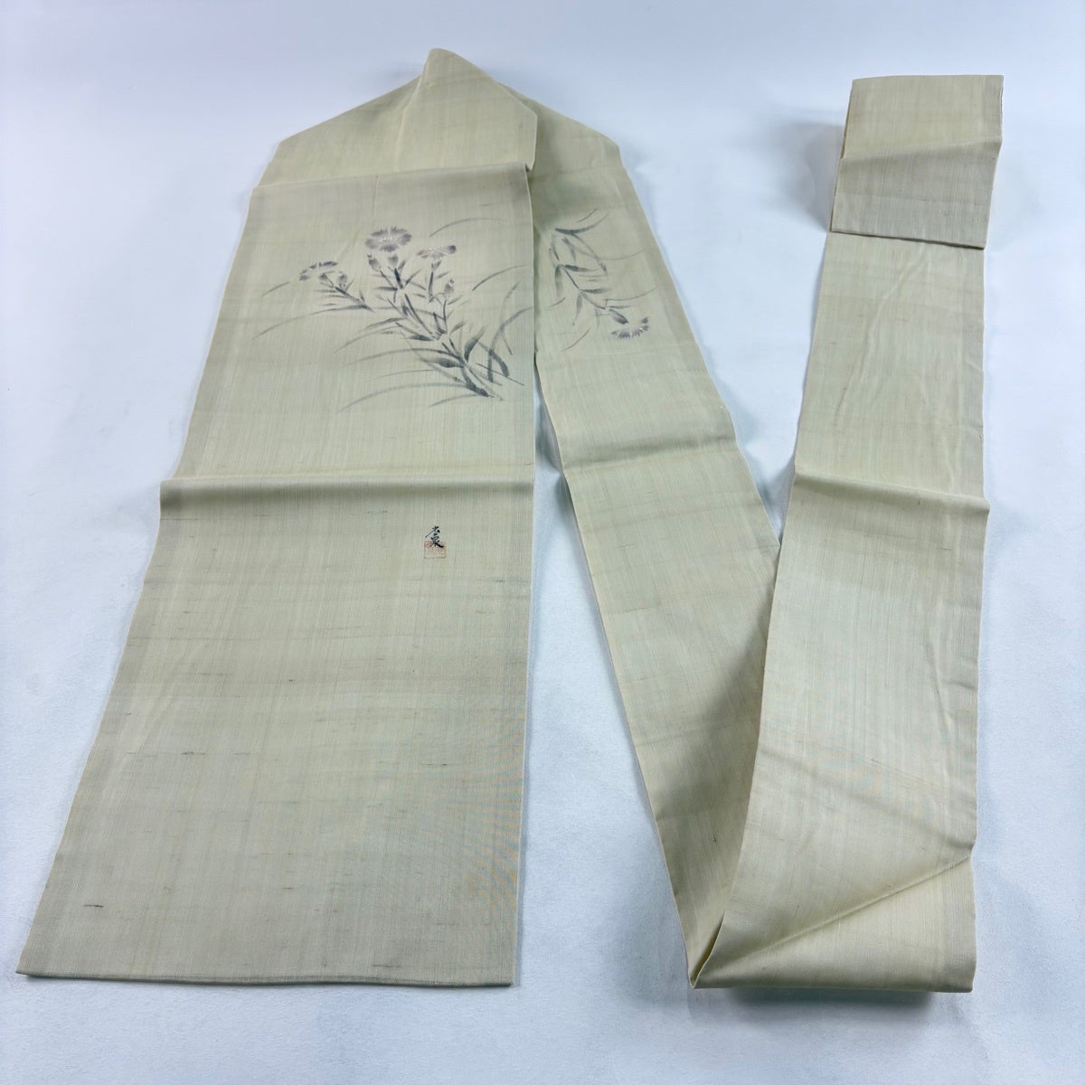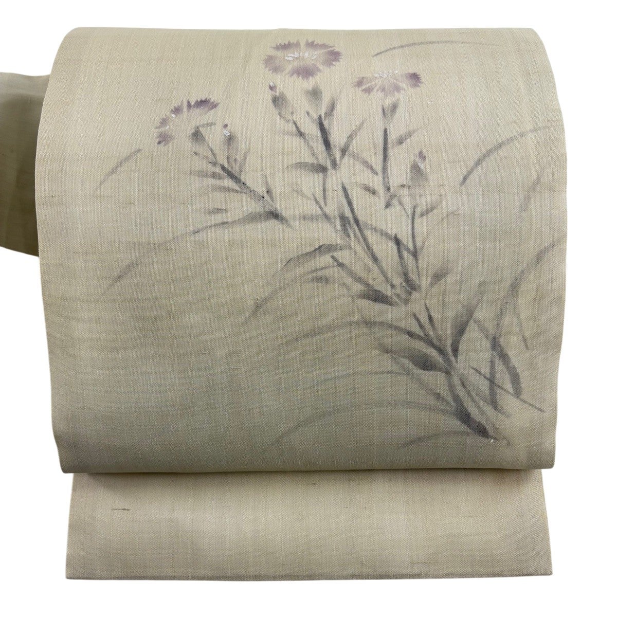 名古屋帯 逸品 落款あり 花唐草 ベージュ 正絹