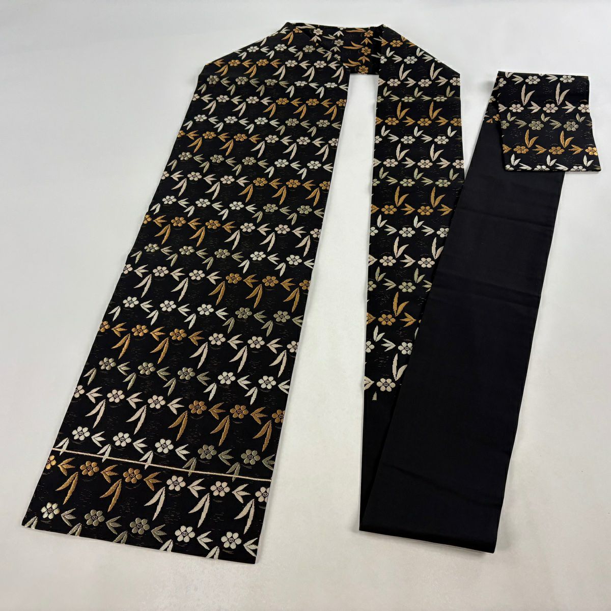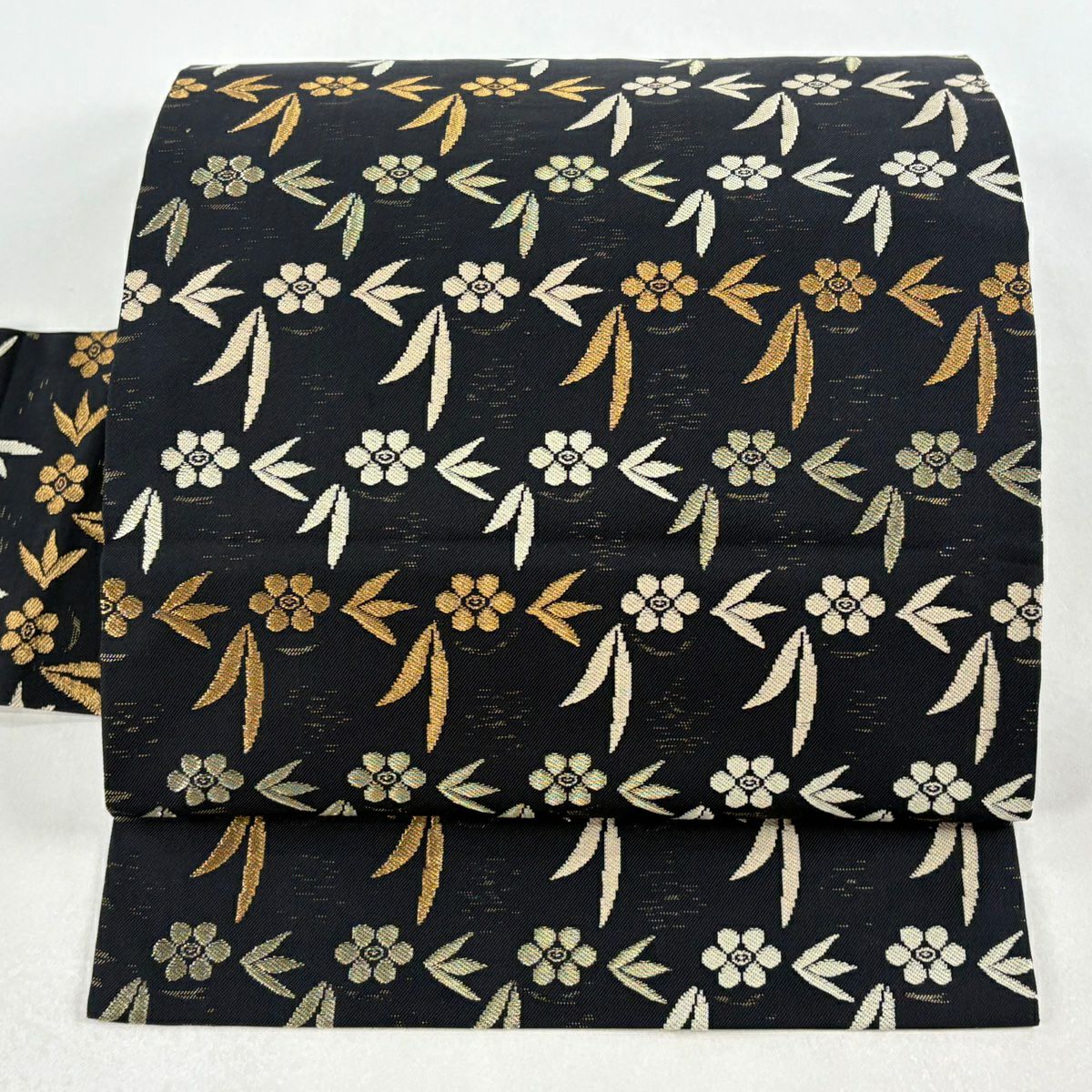 【美品】 名古屋帯 名品 草花 金銀糸 黒 正絹
