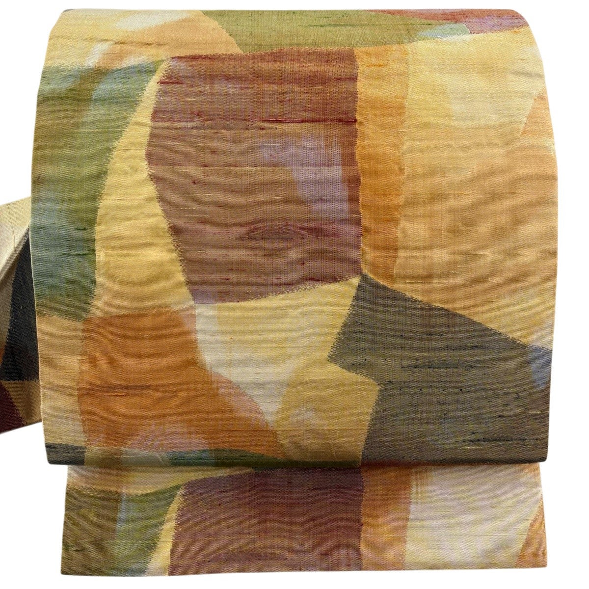 【美品】 名古屋帯 優品 紬地 関西仕立て 幾何学模様 ベージュ 正絹