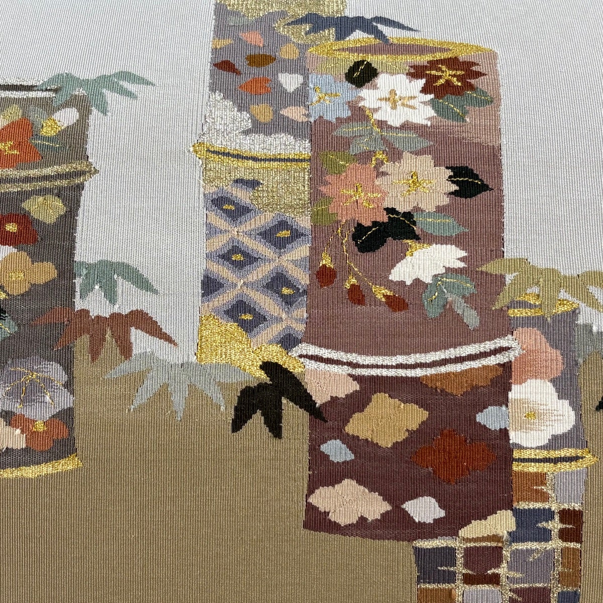 名古屋帯 秀品 八寸名古屋帯 松葉仕立て 花唐草 花菱 金銀糸 綴れ 灰茶 正絹