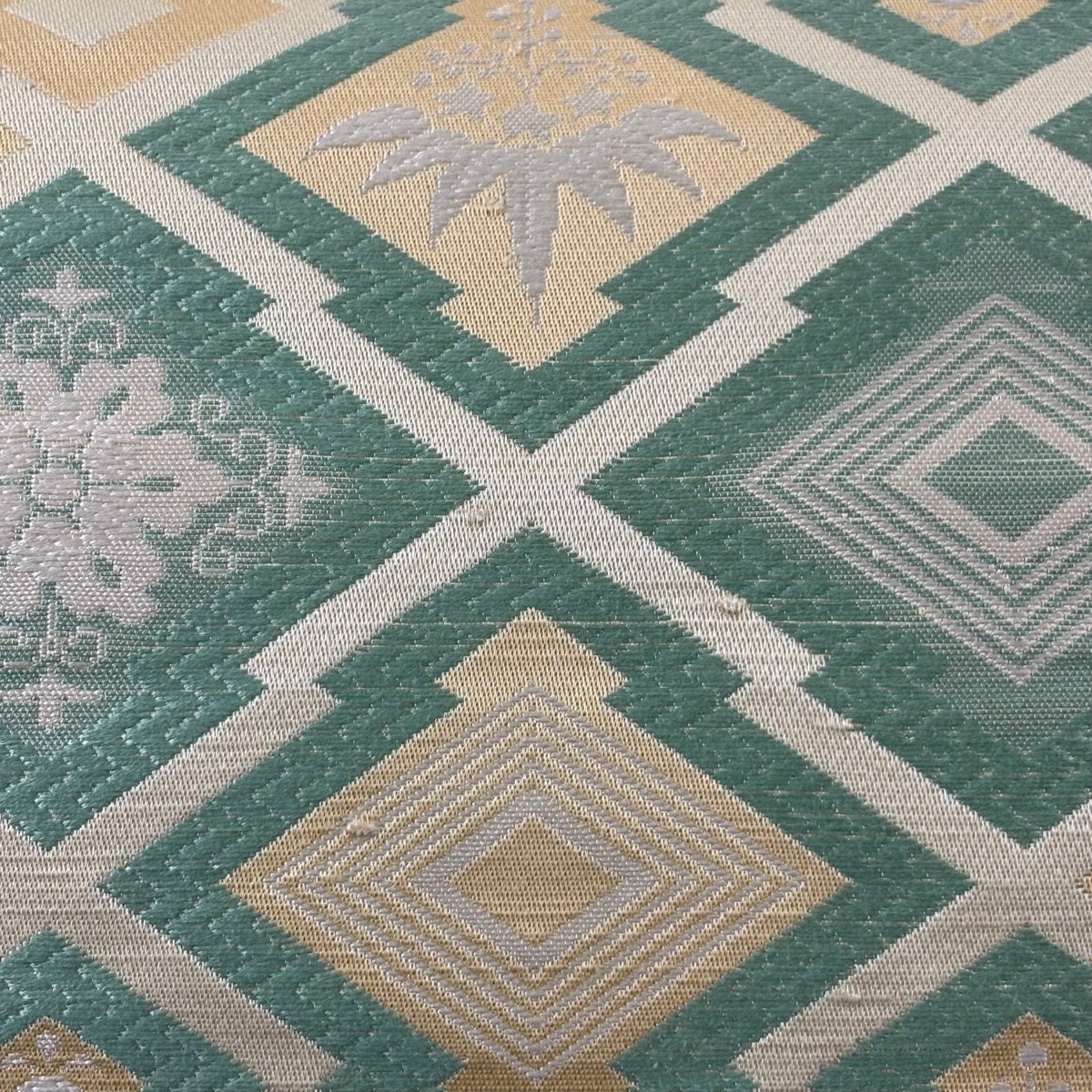 【美品】 名古屋帯 秀品 夏帯 八寸名古屋帯 松葉仕立て 幾何学 金糸 薄緑 正絹