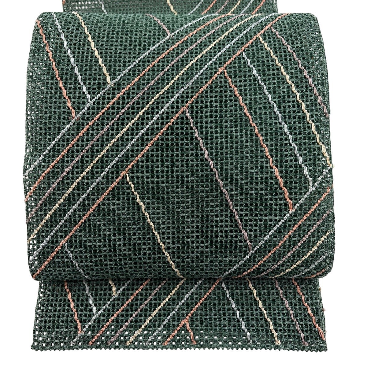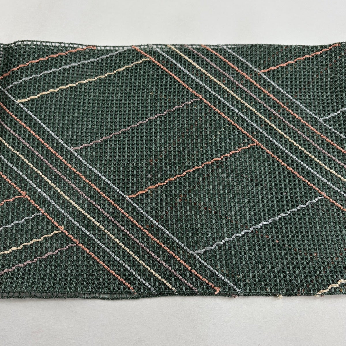 【美品】 名古屋帯 秀品 夏帯 羅 八寸名古屋帯 松葉仕立て 幾何学模様 菱 紺色 正絹