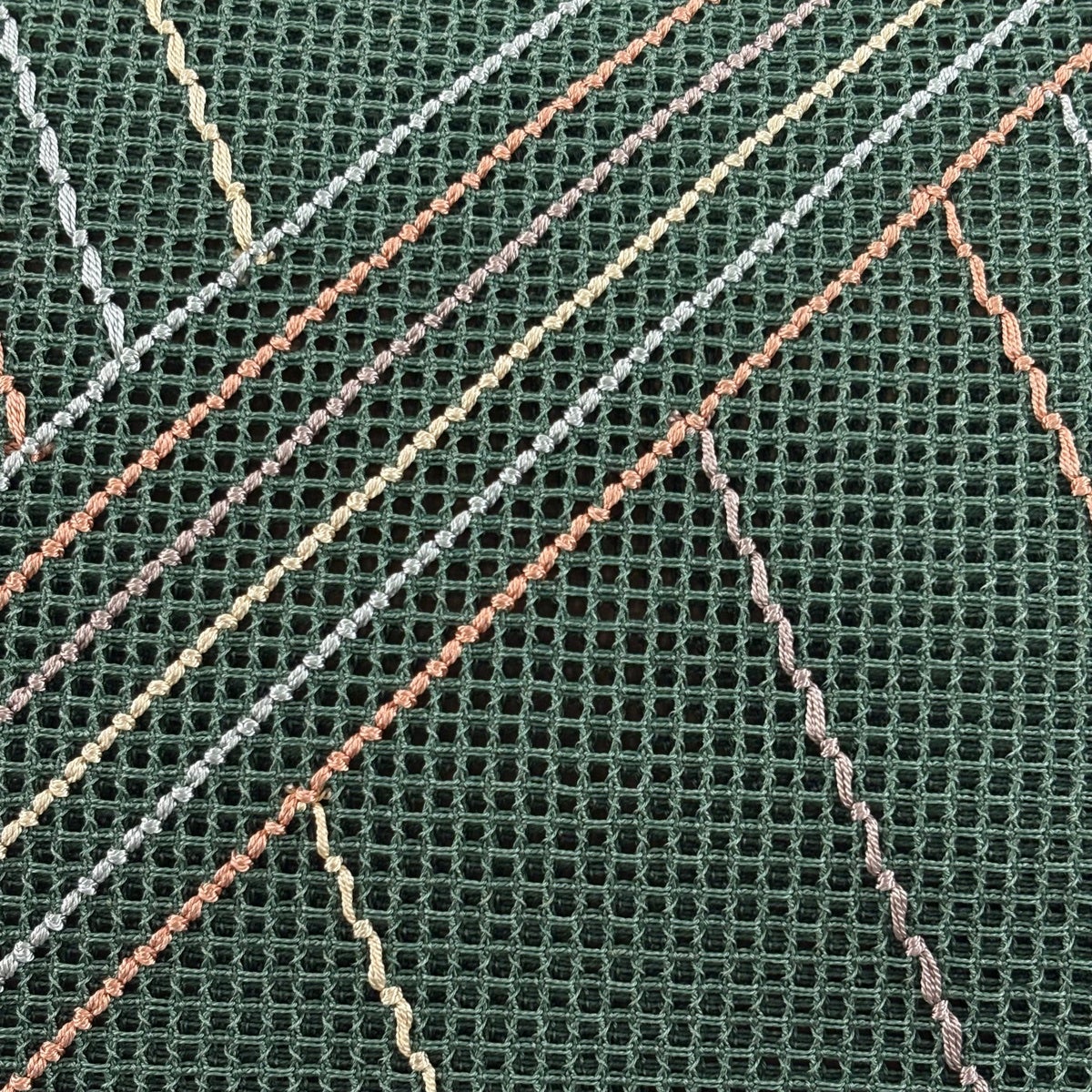 【美品】 名古屋帯 秀品 夏帯 絽 八寸名古屋帯 松葉仕立て 幾何学 ベージュ 正絹