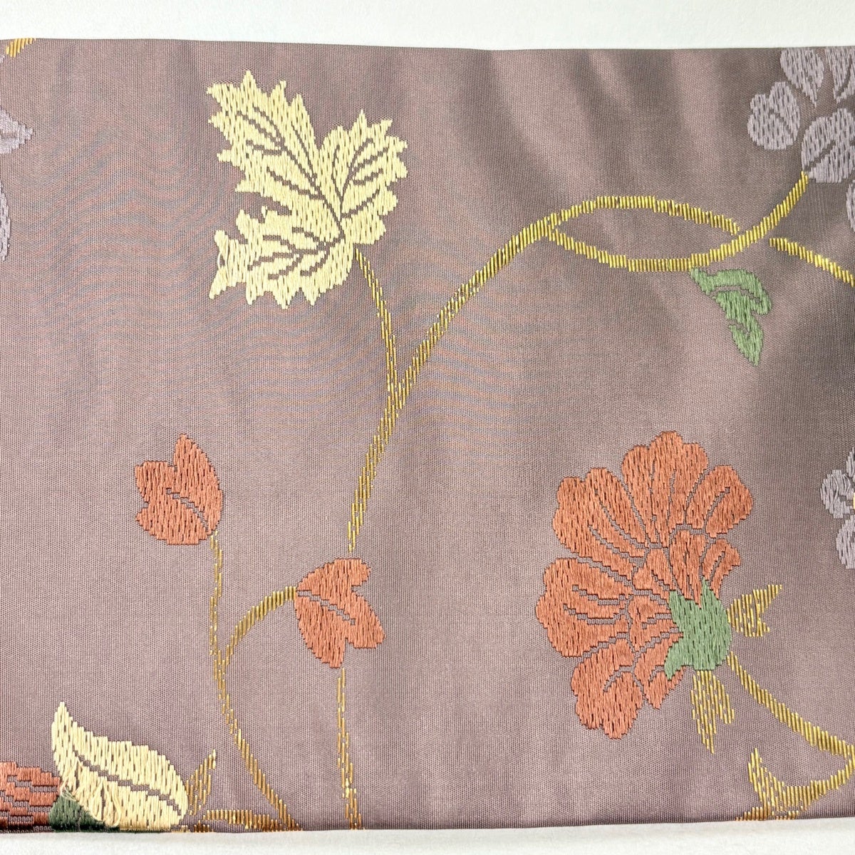 名古屋帯 秀品 夏帯 草花 灰茶 正絹