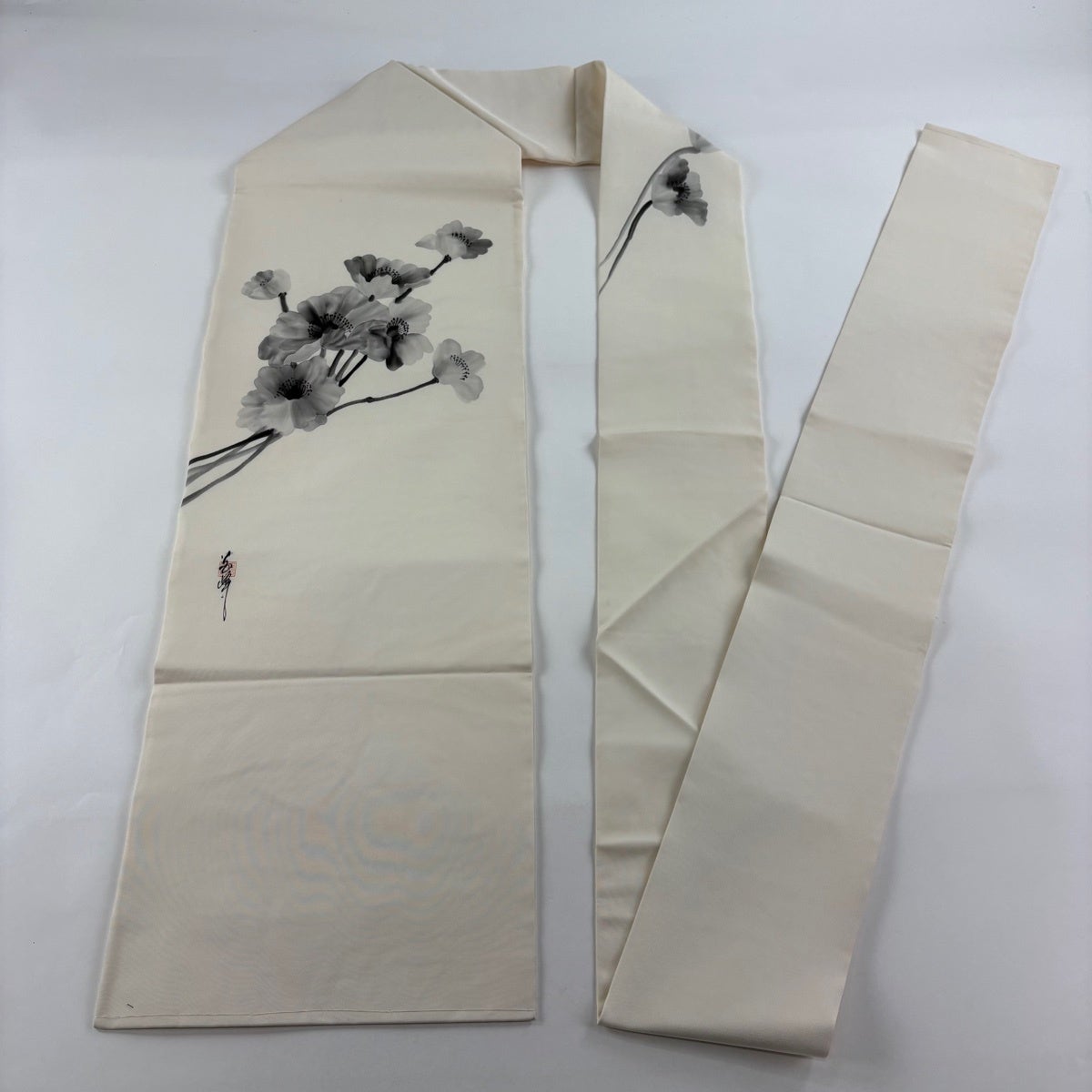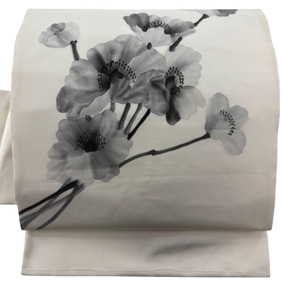 名古屋帯 秀品 色紙 草花 灰色 正絹