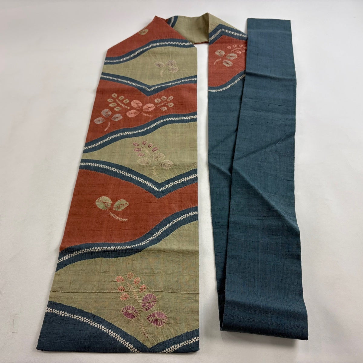 名古屋帯 秀品 葉柄 絞り 灰緑 正絹