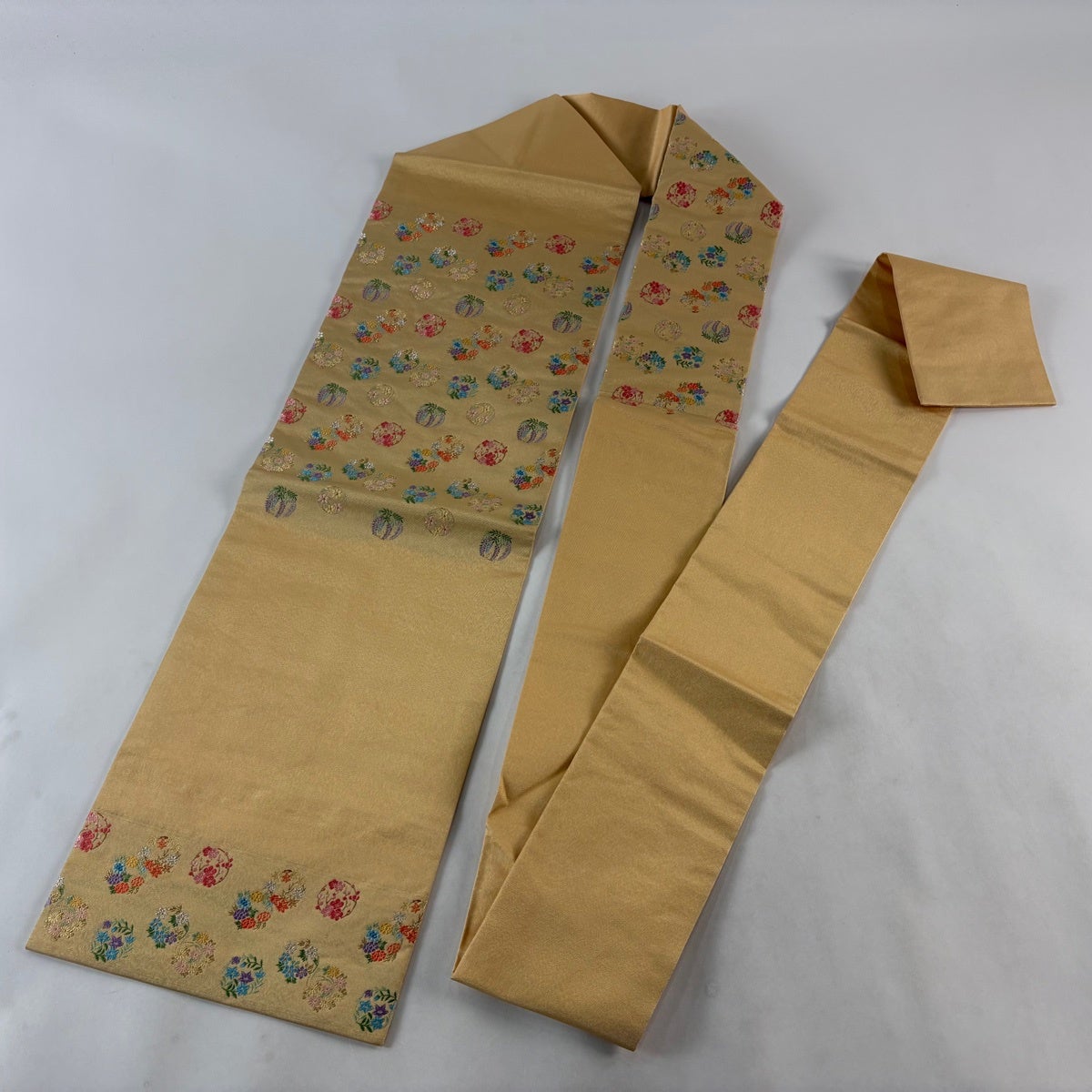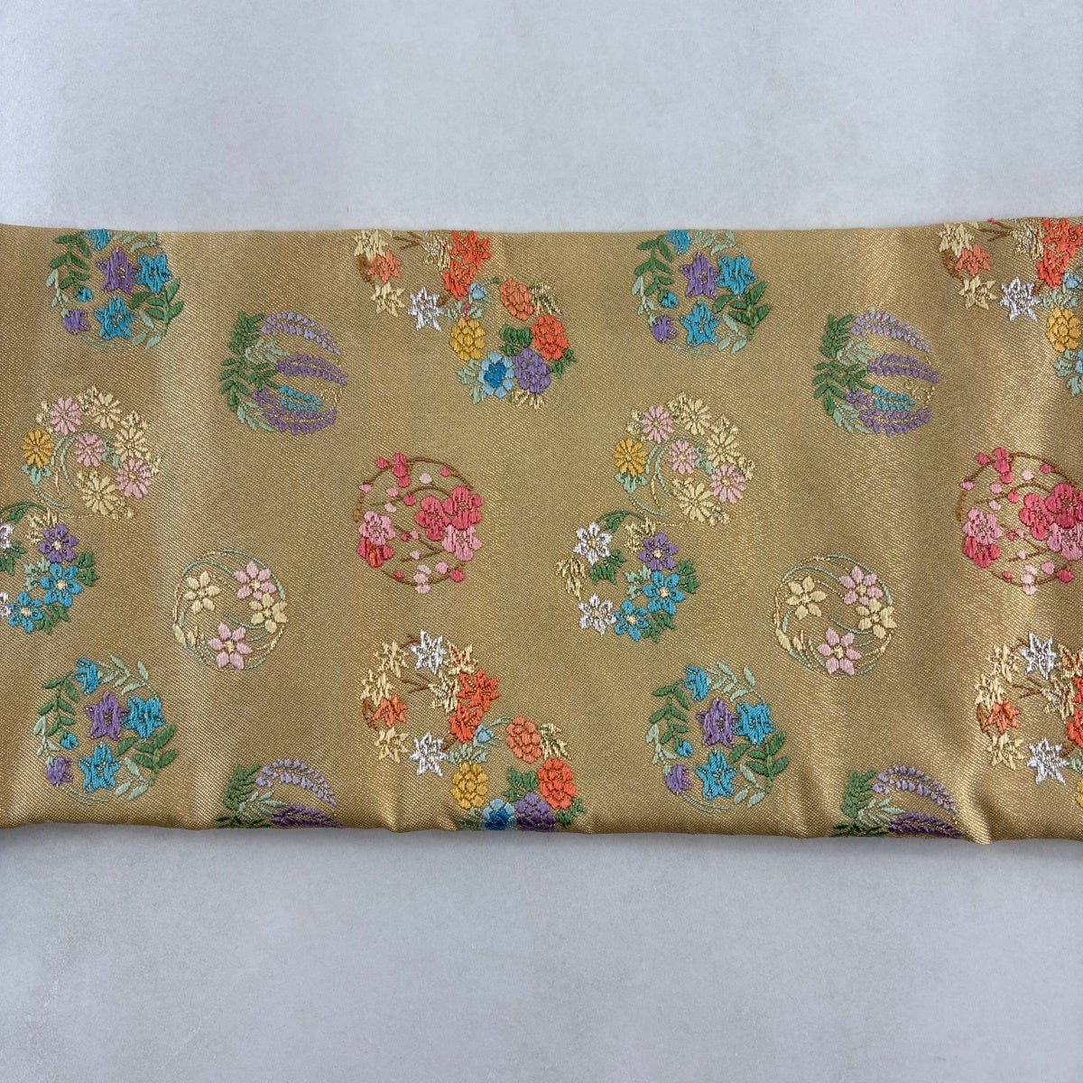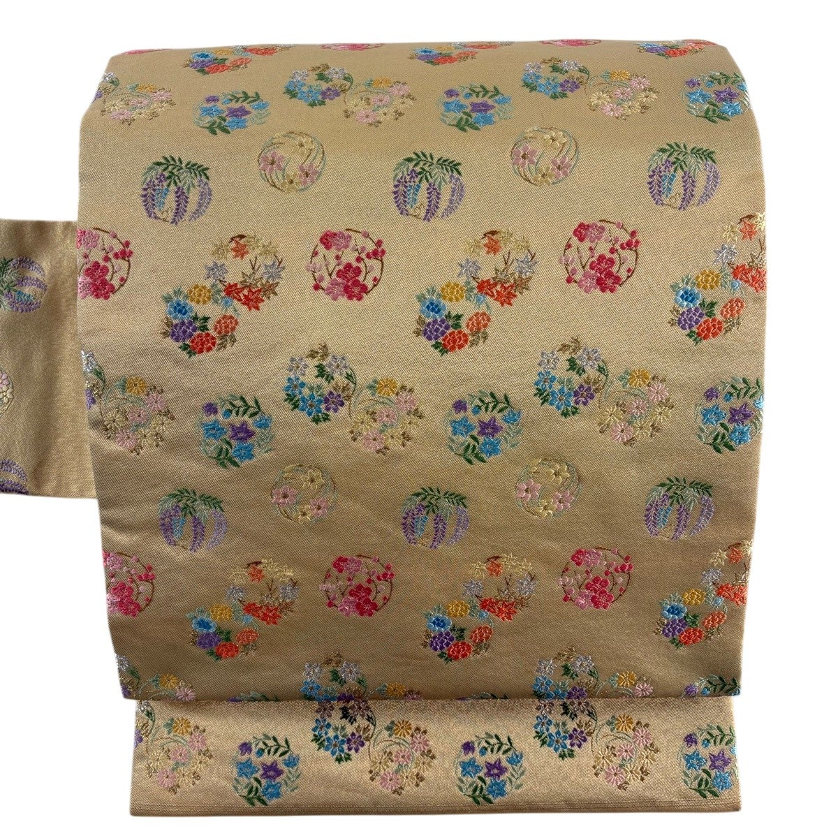 名古屋帯 秀品 花丸文 金糸 刺繍 クリーム 正絹