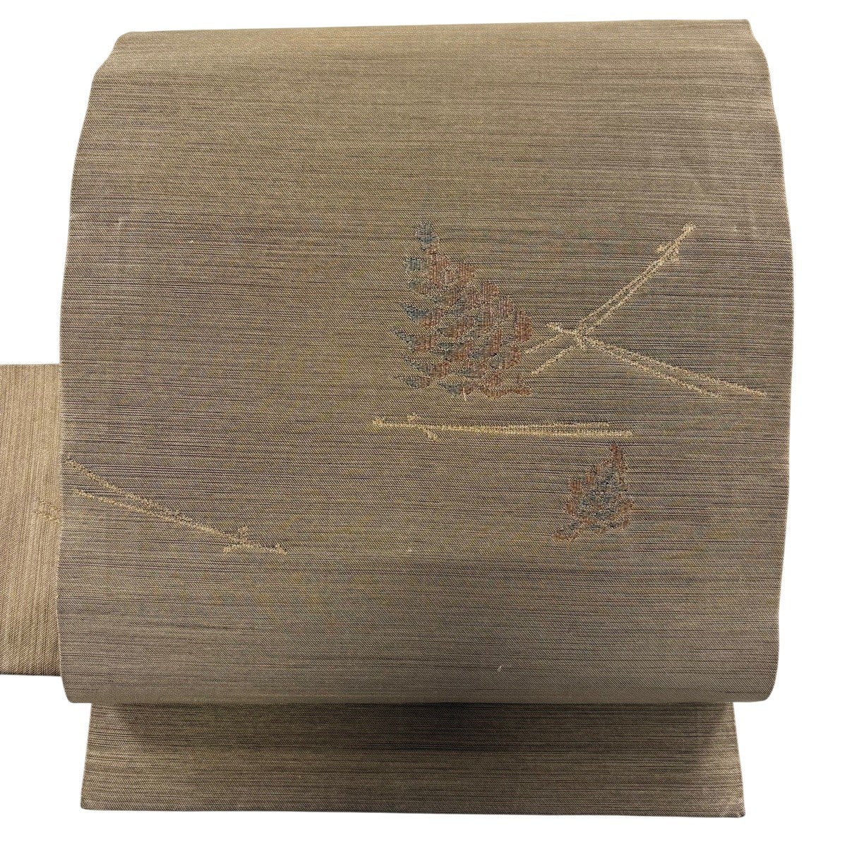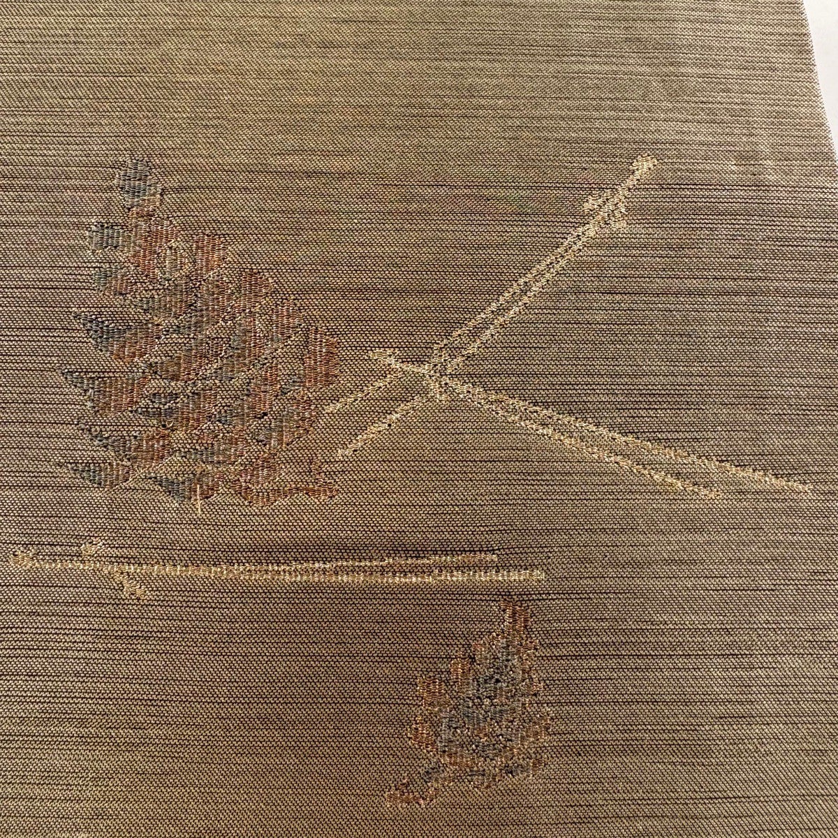 名古屋帯 逸品 花唐草 草花 金銀糸 薄茶色 正絹