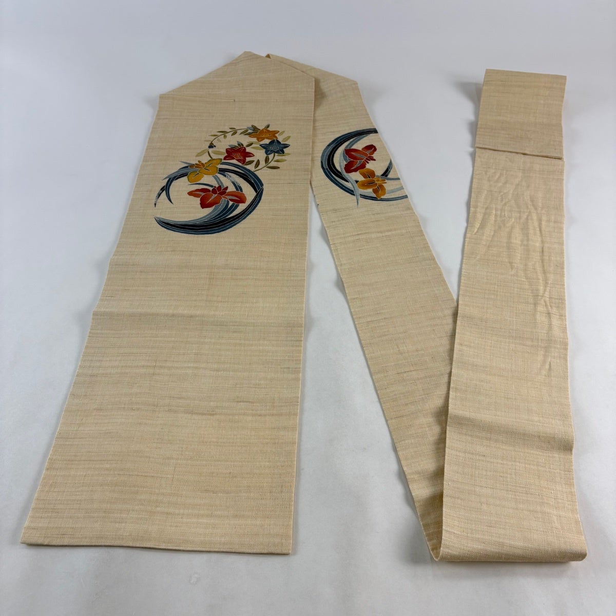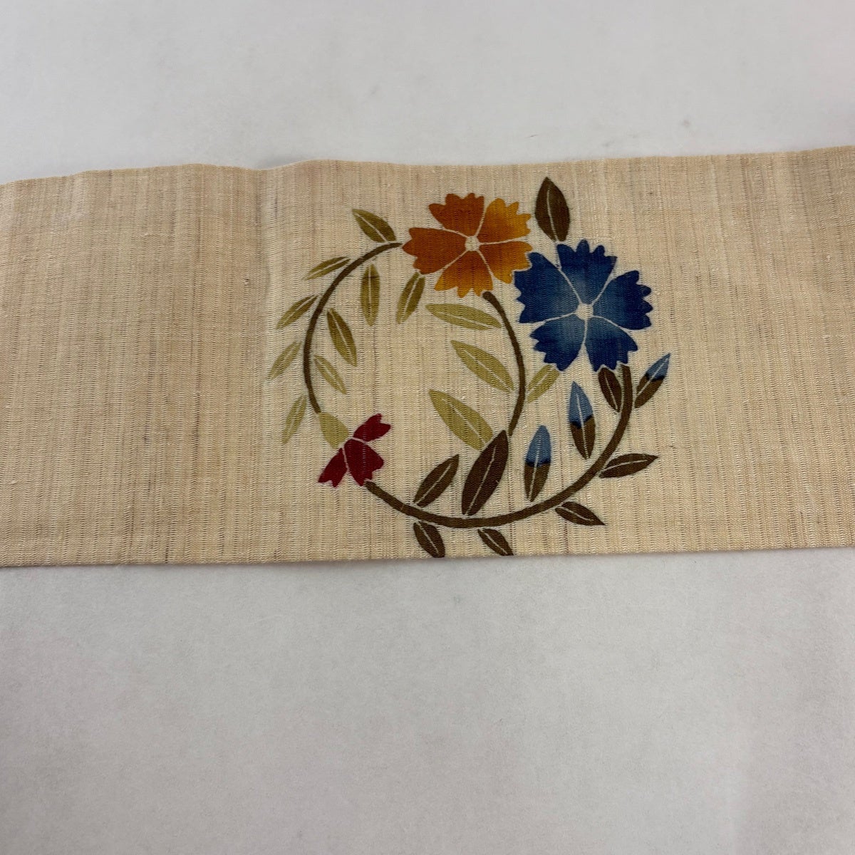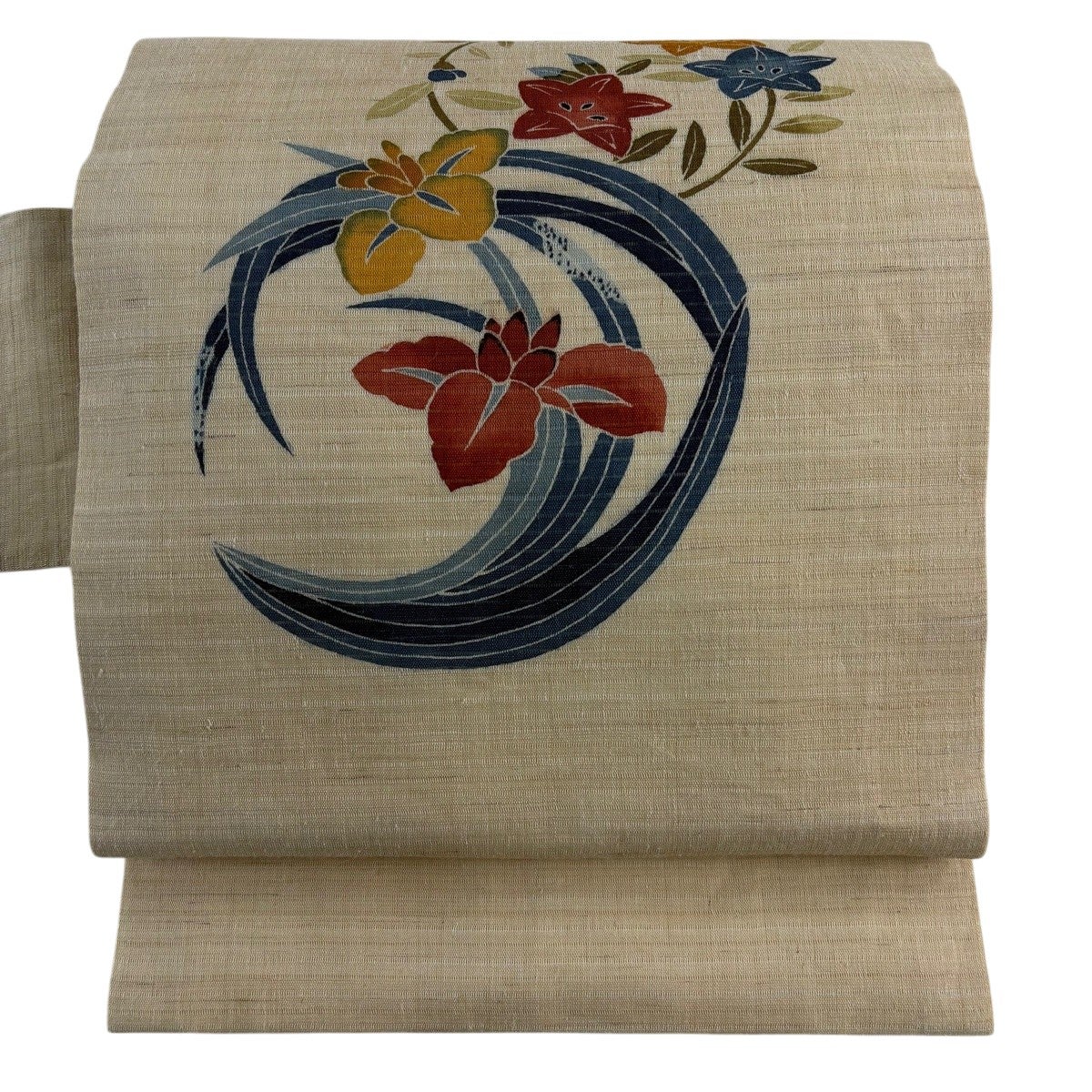 名古屋帯 秀品 夏帯 草花 金銀糸 クリーム 正絹
