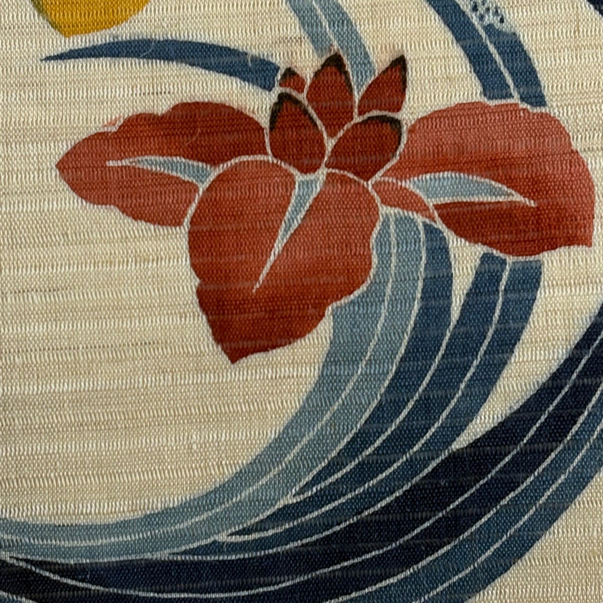 名古屋帯 優品 椿 波 金銀糸 箔 クリーム 正絹