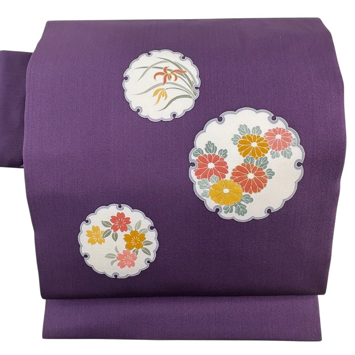 名古屋帯 優品 花菱 草花 刺繍 金彩 銀色 正絹